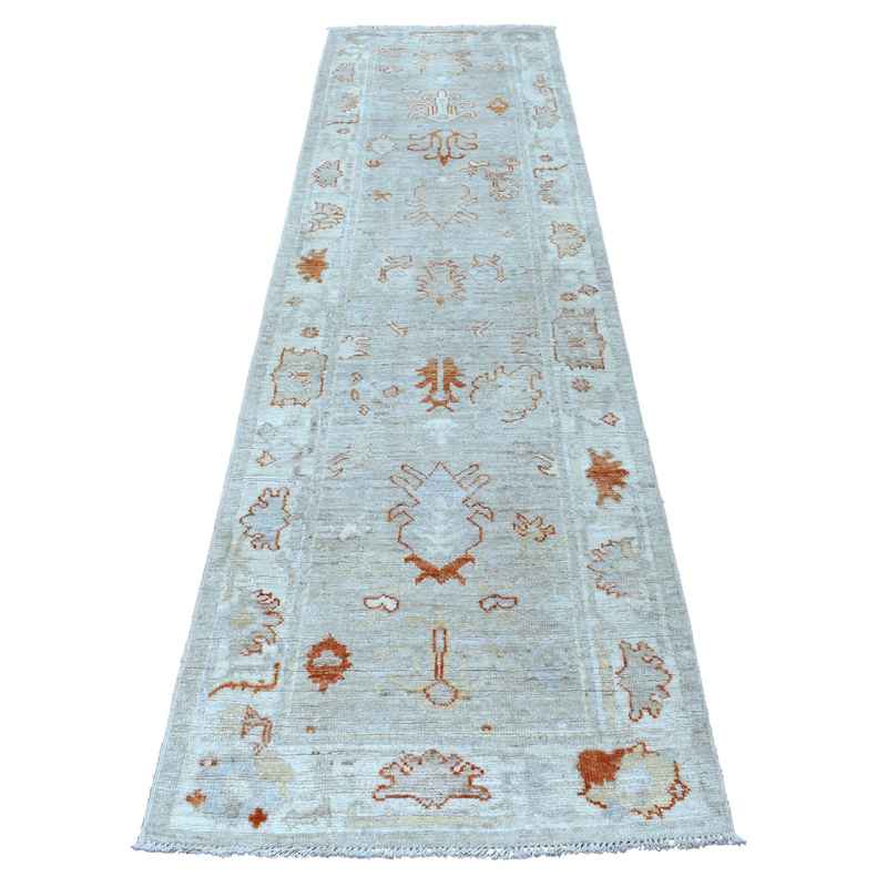 2’8″x10′ Cream Color Hand Knotted Angora Oushak With Soft And Vibrant Wool Oriental Runner Rug Sh56592