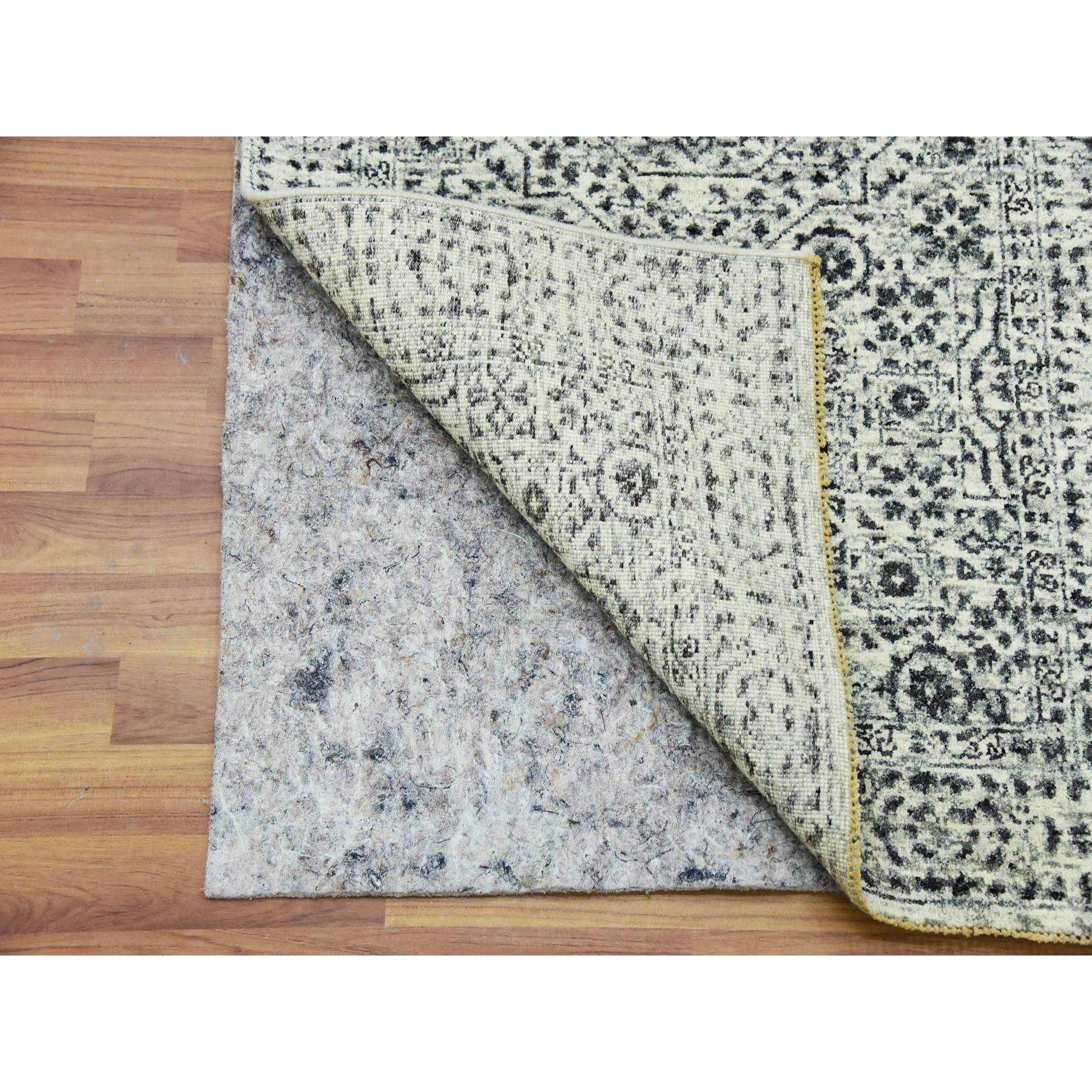 2’8″x10′ Harp White, Hand Knotted, Mamluk Dynasty, Tone on Tone Design, Undyed Luxurious Wool, Runner Oriental Rug Sh79685