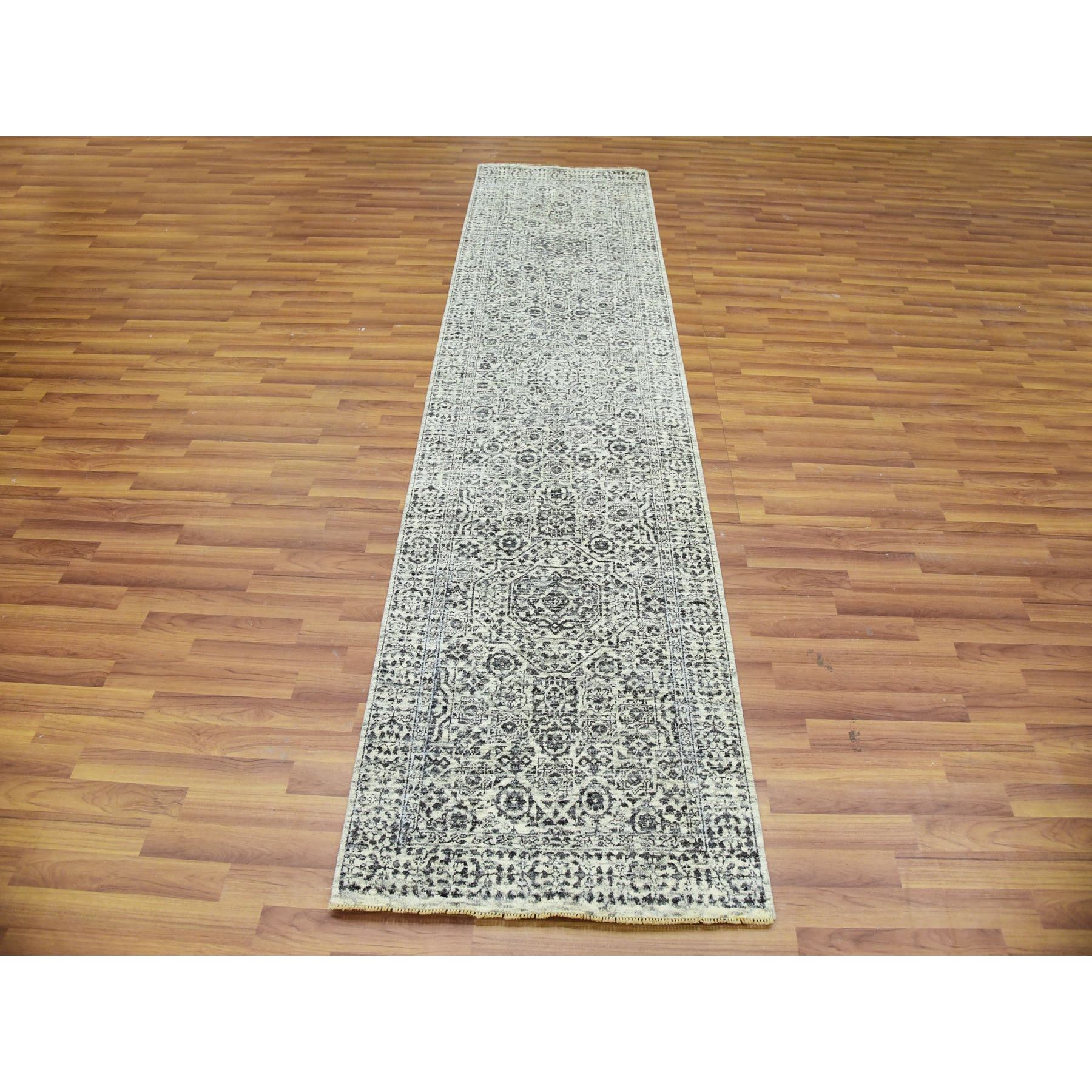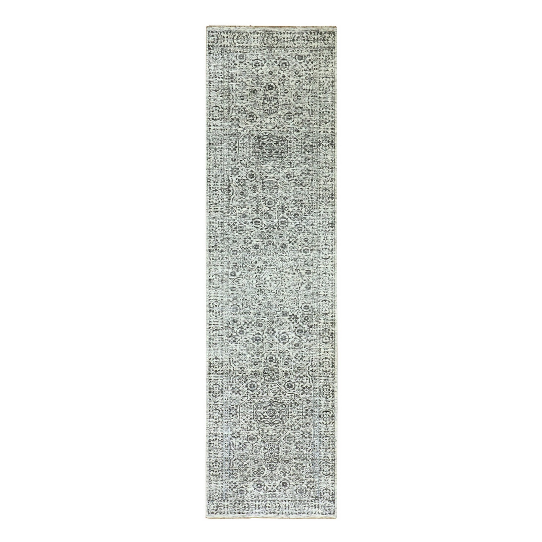 2’8″x10′ Peppermint White, Mamluk Dynasty, Tone on Tone Design, Undyed 100% Wool, Hand Knotted, Runner Oriental Rug Sh79684