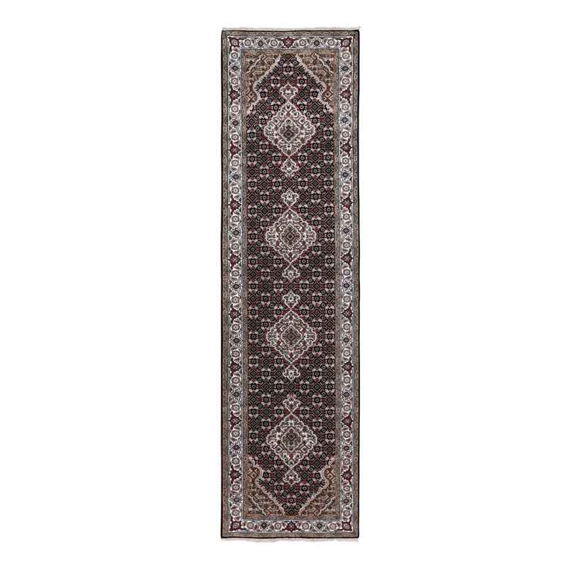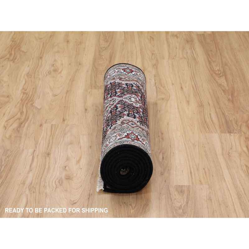 2’8″x10’1″ Black Tabriz Mahi Fish Design Wool Runner Hand Knotted Oriental Rug Sh58298