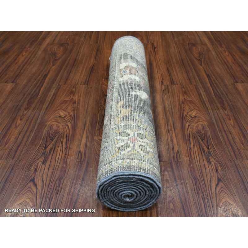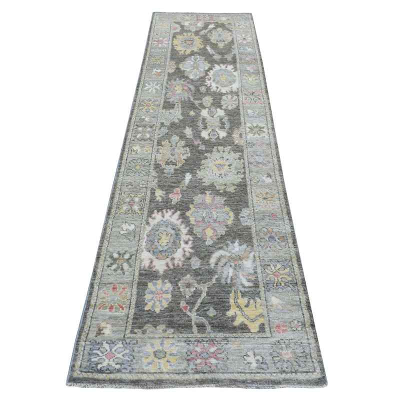2’8″x10’1″ Charcoal Black Angora Oushak with Faded Out Colors Extra Soft Wool Hand Knotted Oriental Runner Rug Sh69047