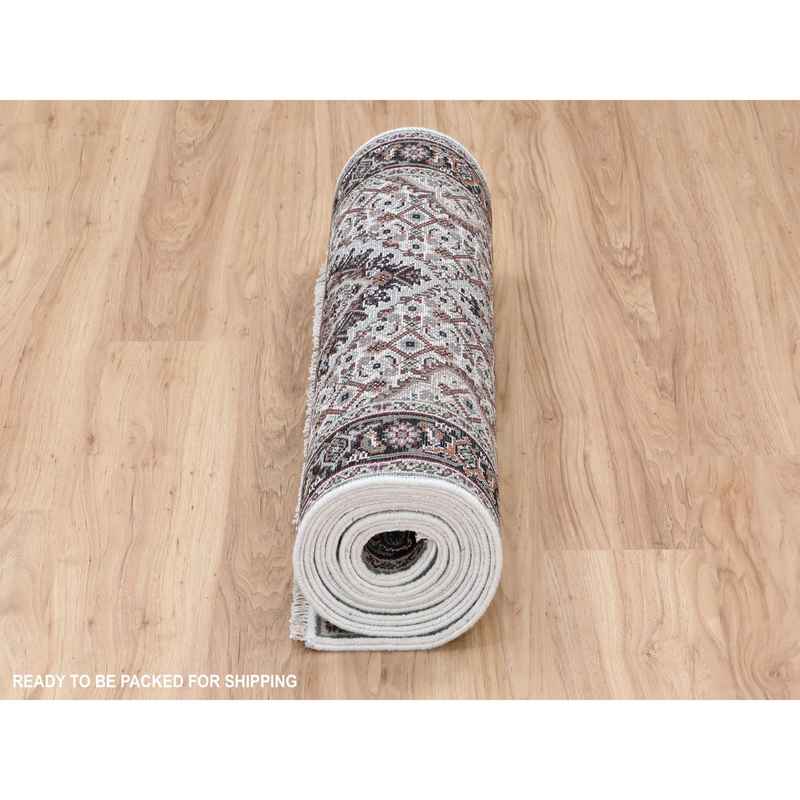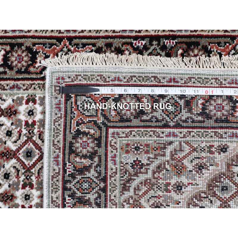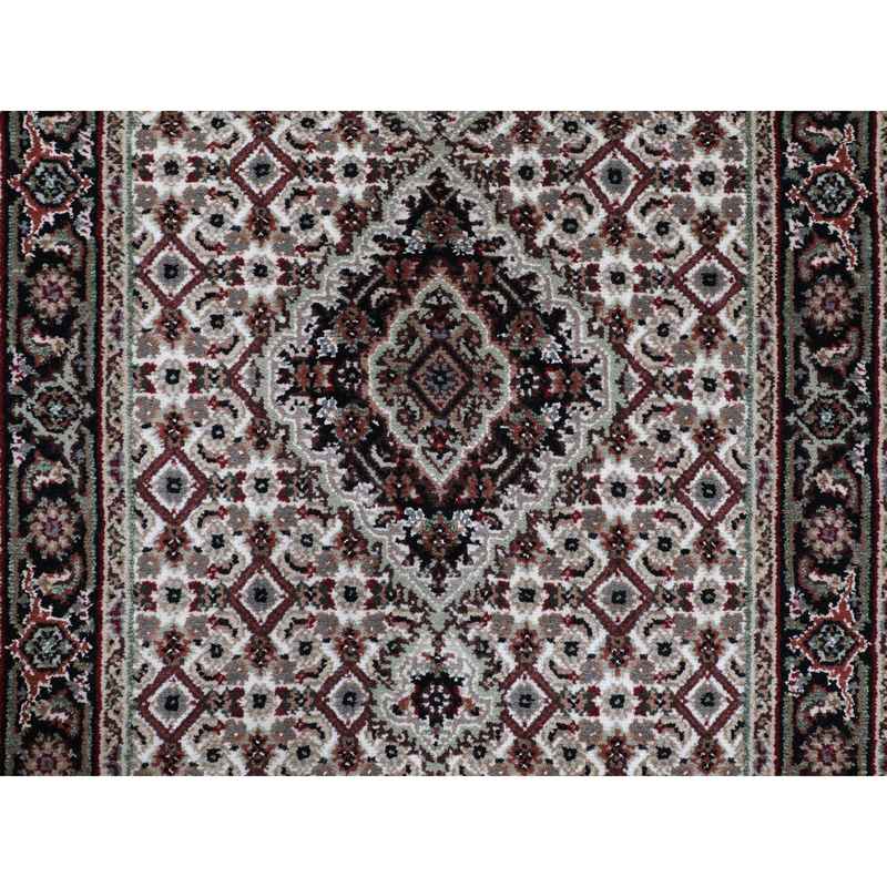 2’8″x10’1″ Ivory Tabriz Mahi Fish Design Wool And Silk Runner Hand Knotted Oriental Rug Sh58316
