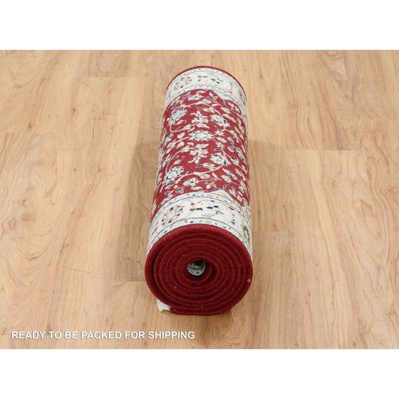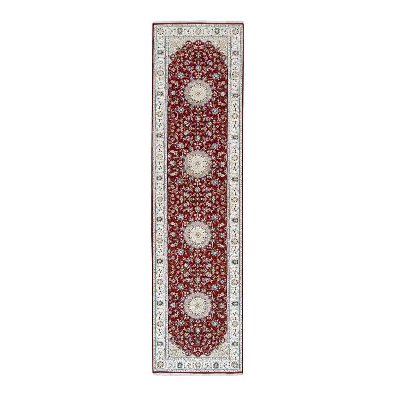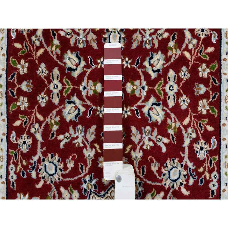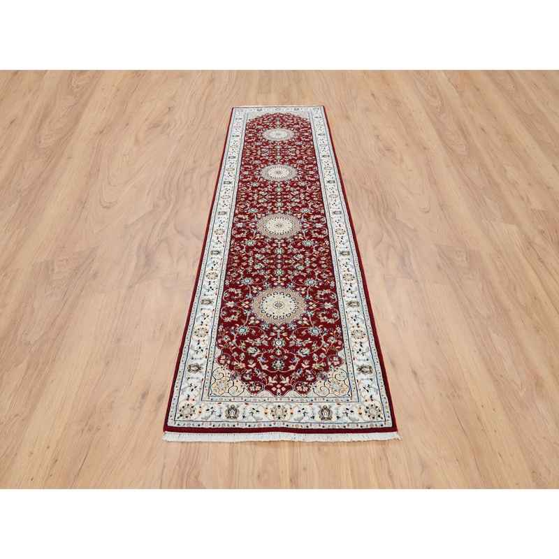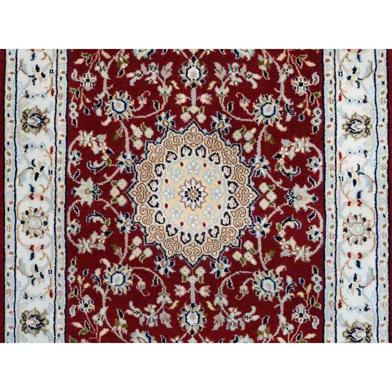 2’8″x10’2″ Cherry Red, Hand Knotted Nain with Medallion and Flower Design, 250 KPSI Wool, Runner Oriental Rug Sh63973