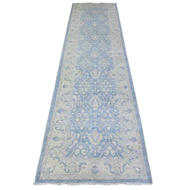2’8″x10’4″ Ruddy Blue, Hand Knotted, Vegetable Dyes, Natural Wool, White Wash Peshawar, Runner Oriental Rug Sh88354