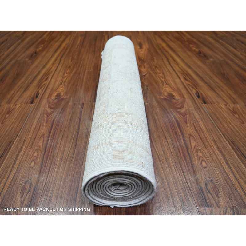 2’8″x11’9″ White Wash Peshawar with Faded Colors Vegetable Dyes, Soft Wool Hand Knotted, Runner Oriental Rug Sh73730