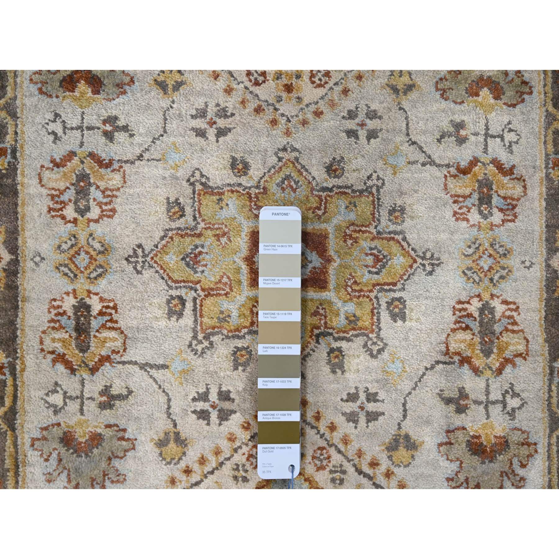 2’8″x12′ Timberwolf Gray with Taupe Brown, Hand Knotted Karajeh and Geometric Medallion Design, Natural Dyes, Pure Wool, Runner Oriental Rug Sh84785