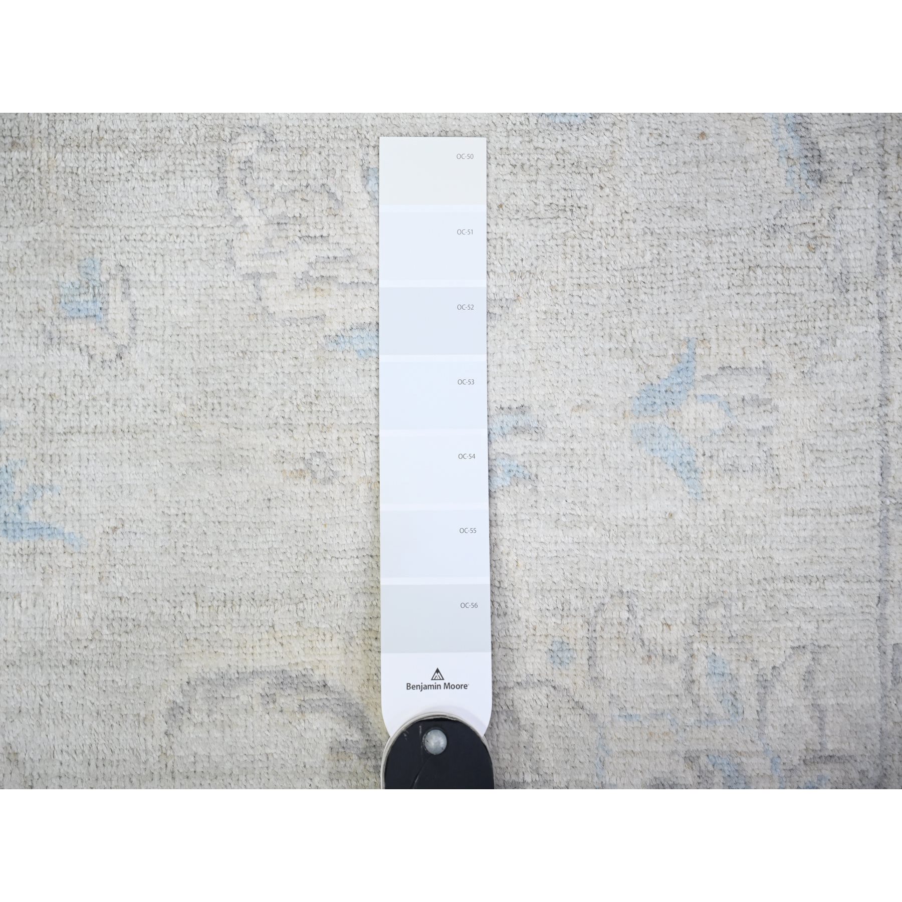 2’8″x12’2″ Ice Gray, Vegetable Dyes, Peshawar Washed Out Faded Designs, Organic Wool, Hand Knotted, Runner Oriental Rug Sh74778