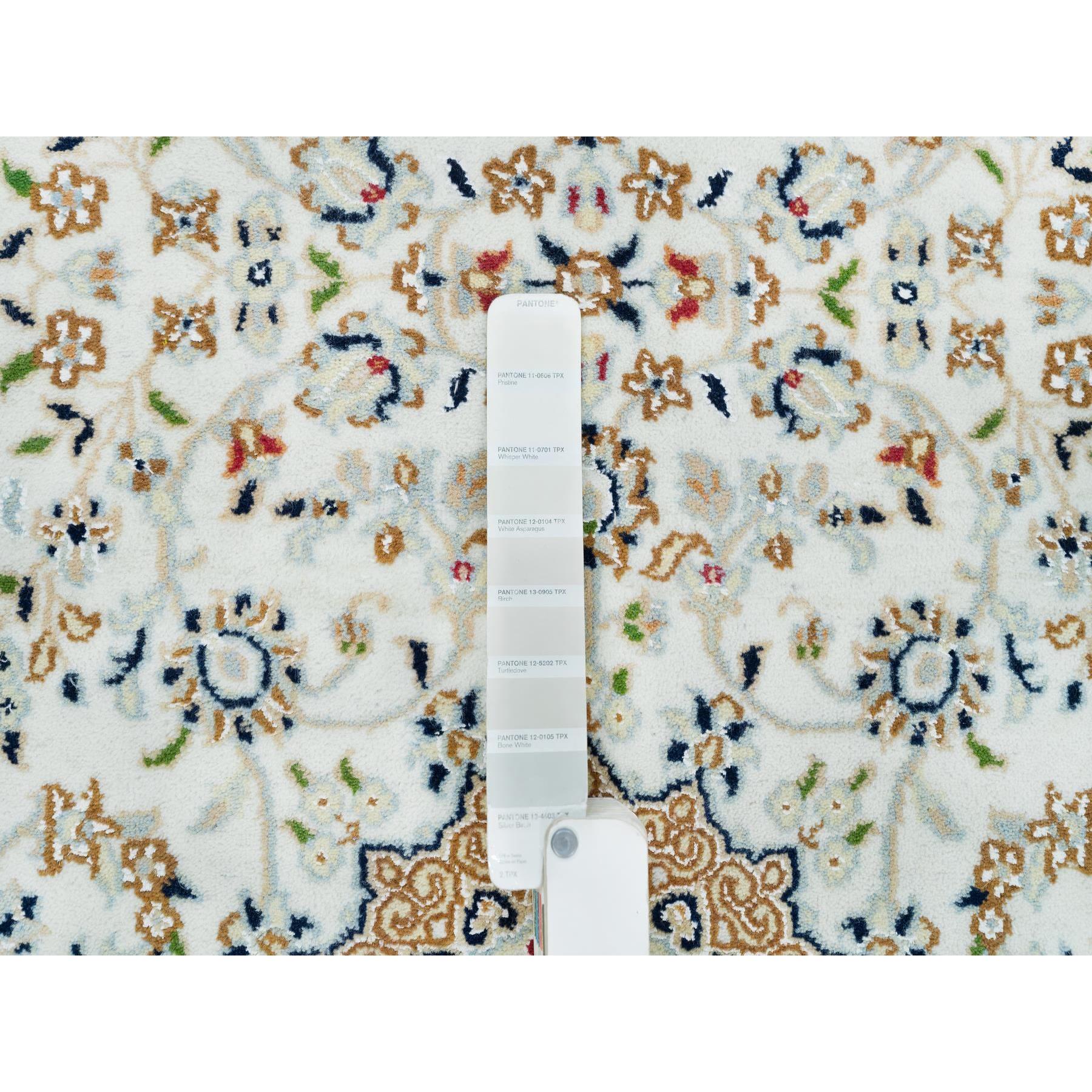 2’8″x13′ Powder White, Hand Knotted, Nain with Center Medallion Flower Design, 250 KPSI, Organic Wool, Runner Oriental Rug Sh90028