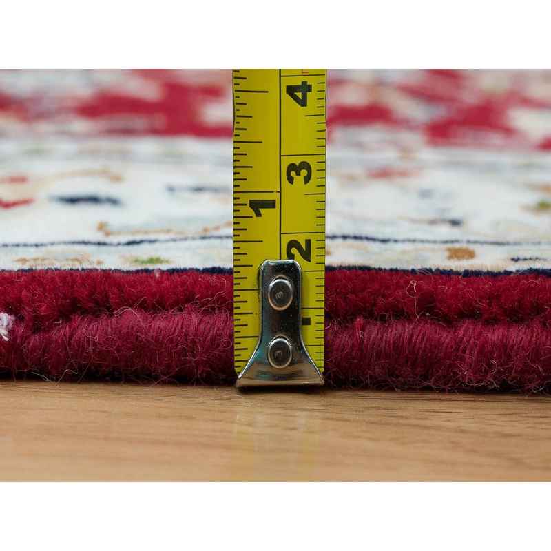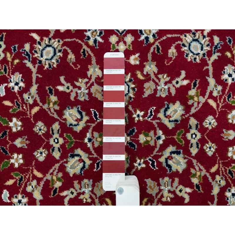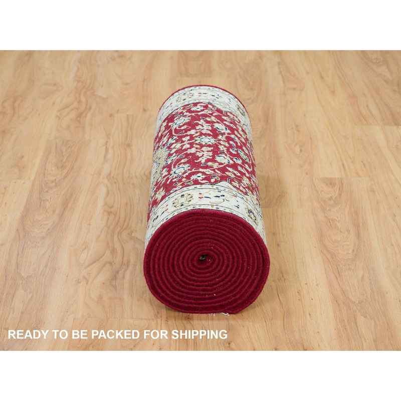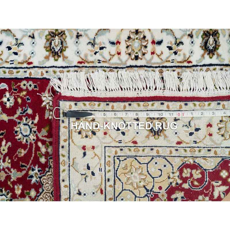 2’8″x17’10” Burgundy Red, Hand Knotted, Nain with Center Medallion Flower Design, 250 KPSI, Organic Wool, XL Runner Oriental Rug Sh90064