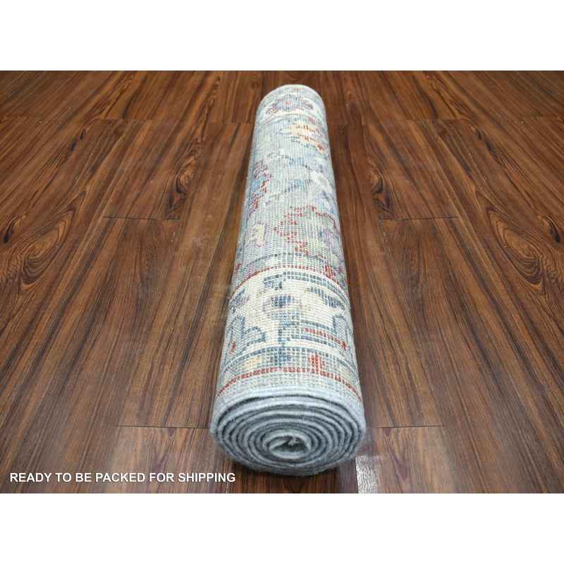 2’8″x9’10” Gray, Soft Wool Hand Knotted, Afghan Angora Oushak Natural Dyes, Runner Oriental Rug Sh71504
