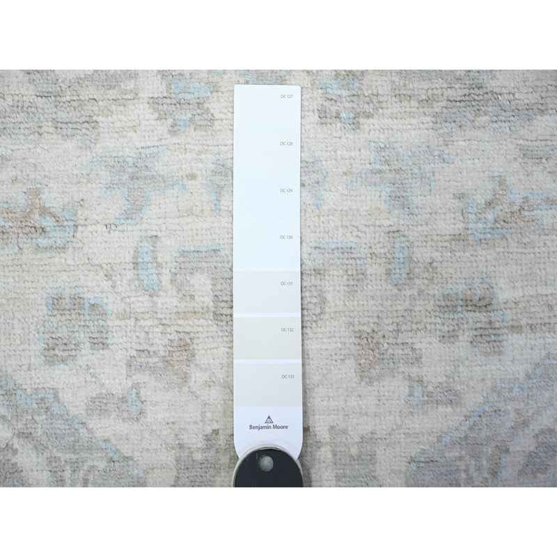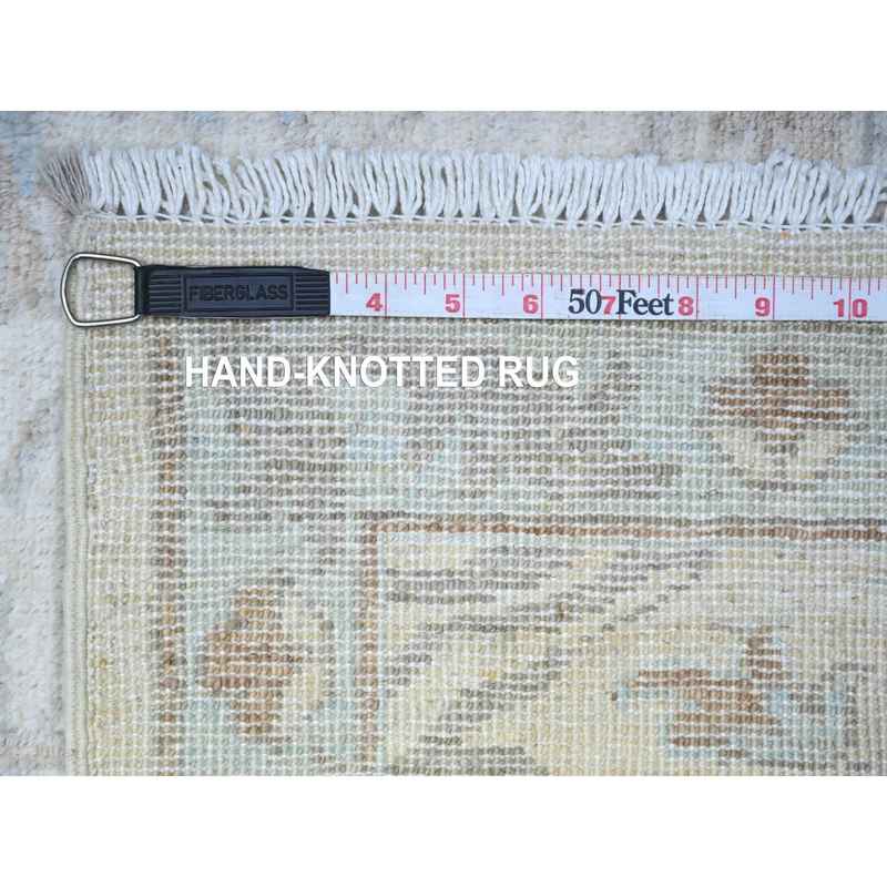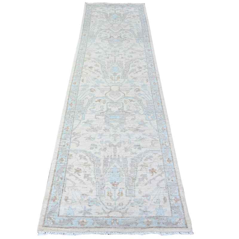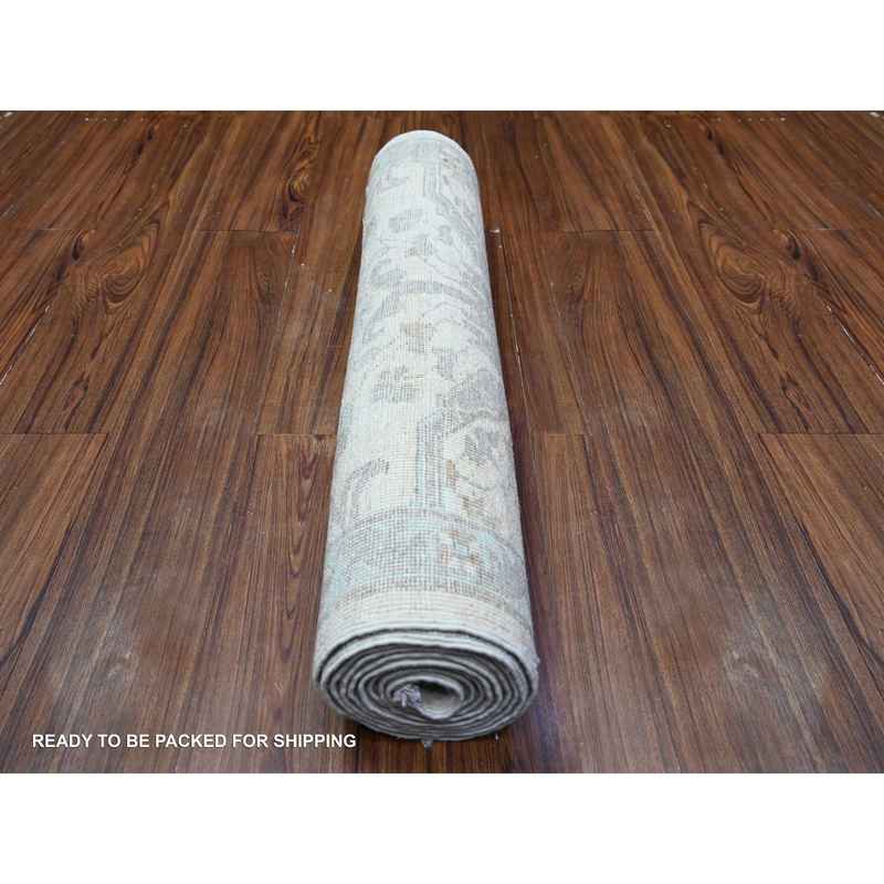2’8″x9’6″ Pearl White, Pure Wool, Shabby Chic White Wash Peshawar, Hand knotted, Runner Oriental Rug sh88364