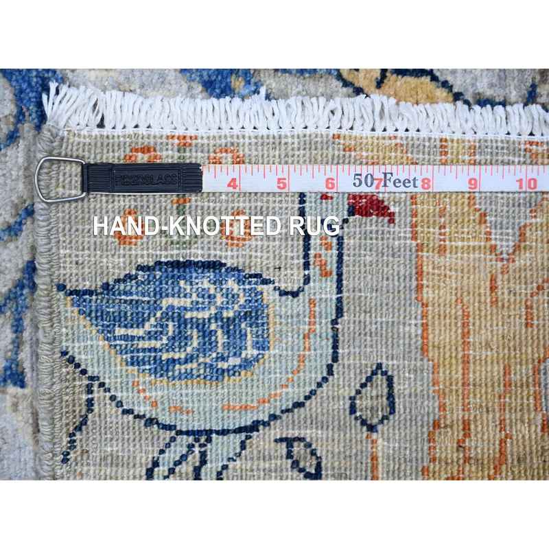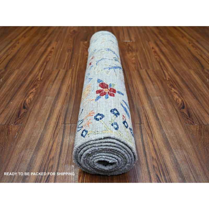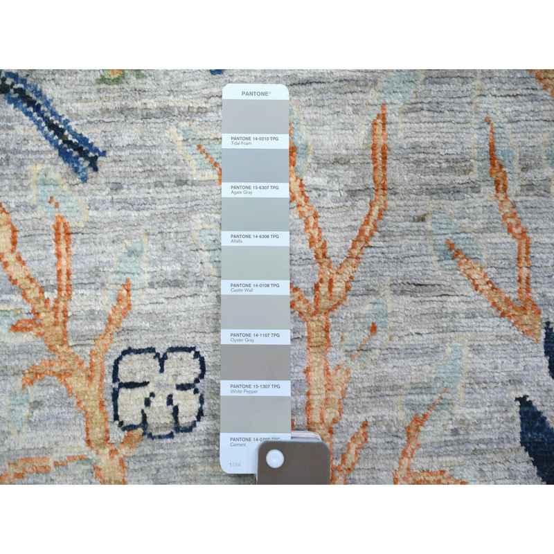 2’8″x9’6″ Silver Gray, Natural Dyes Extra Soft Wool, Hand Knotted Afghan Peshawar with Birds of Paradise, Runner Oriental Rug Sh73488