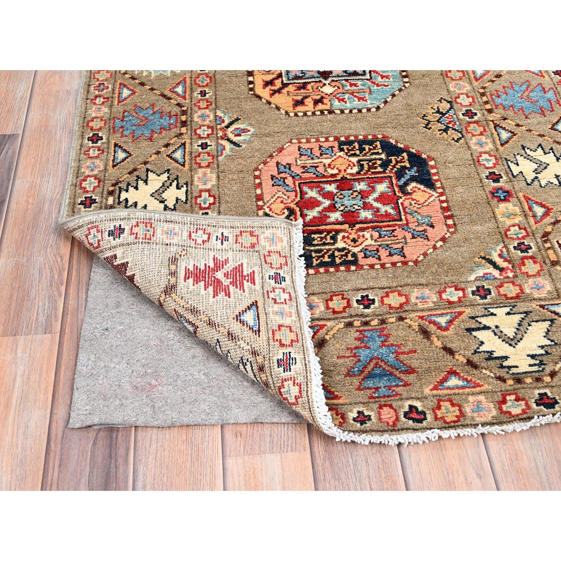 2’8″x9’7″ Dull Gray, Hand Knotted Afghan Ersari Elephant Feet Design, Soft Pile, Vegetable Dyes Natural Wool, Wide Runner Oriental Rug Sh86250