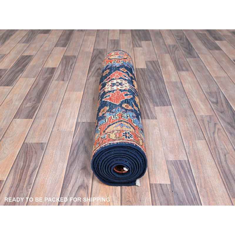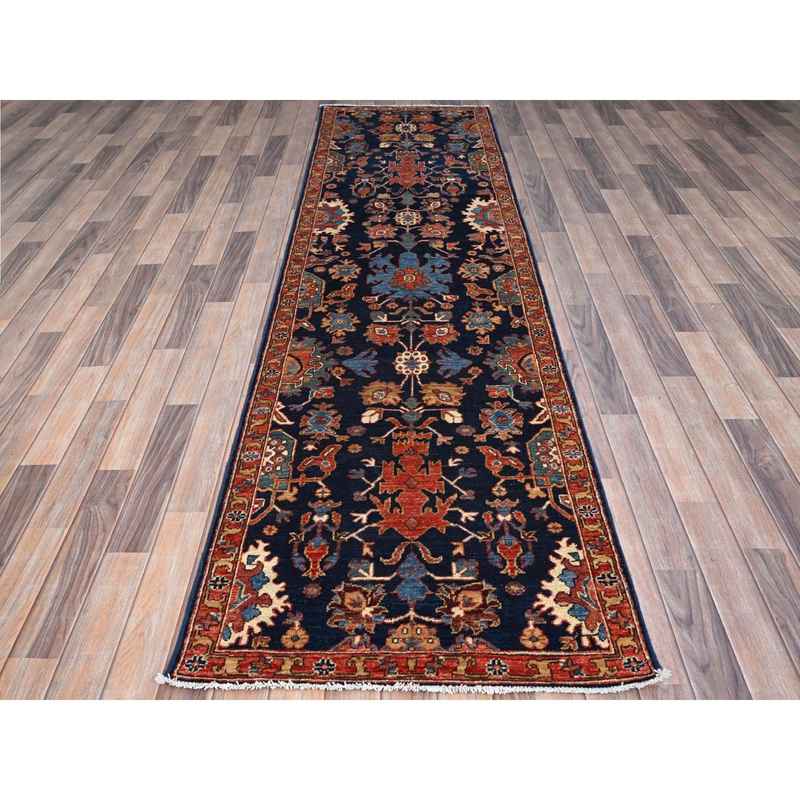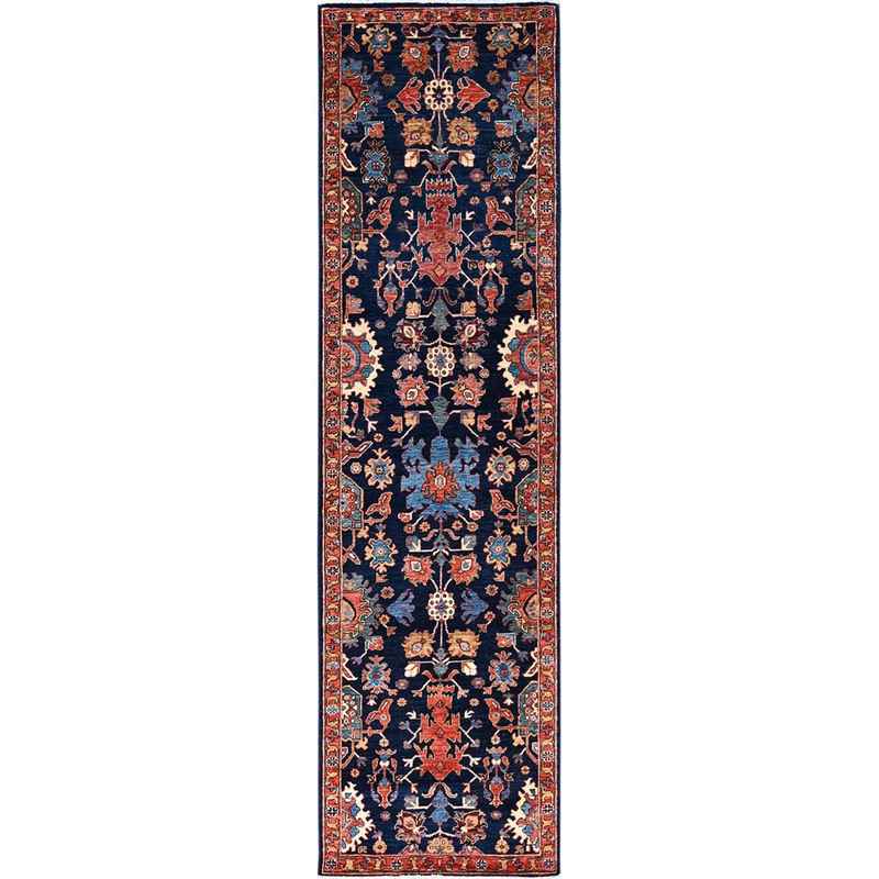 2’9″x10’2″ College Navy Blue, All Over Antiqued Bijar Design, All Natural Wool, Denser Weave, Natural Dyes Hand Knotted Oriental Runner Rug Sh86590