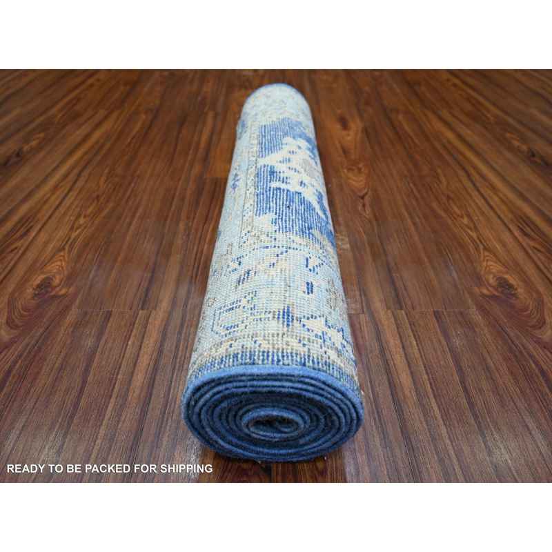2’9″x12′ Medium Sapphire Blue, Soft Wool Hand Knotted, Afghan Angora Oushak with All Over Design Natural Dyes, Runner Oriental Rug Sh73650