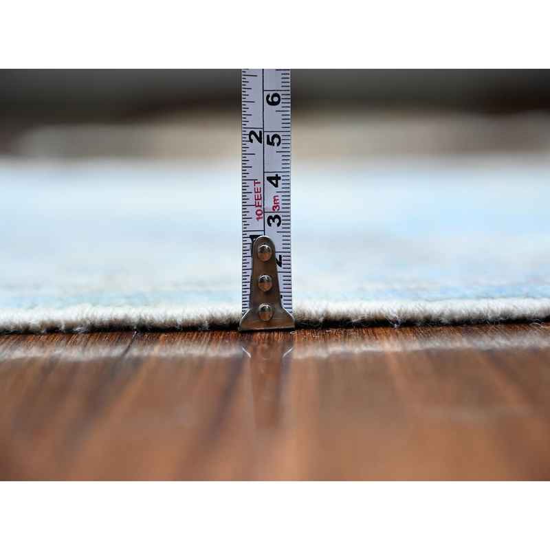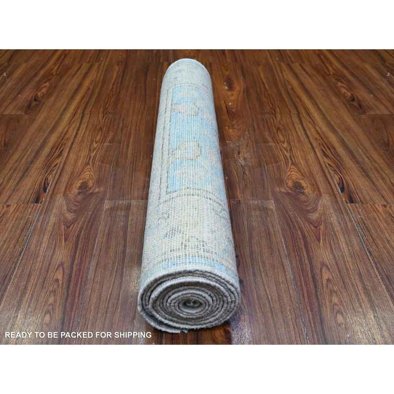 2’9″x12’1″ Sapphire Sea Blue, All Wool, Vegetable Dyes, Afghan Angora Oushak All Over Design, Hand Knotted Oriental Runner Rug R88155