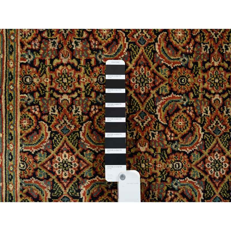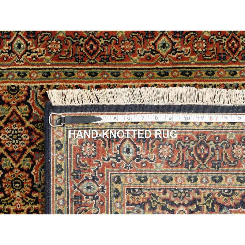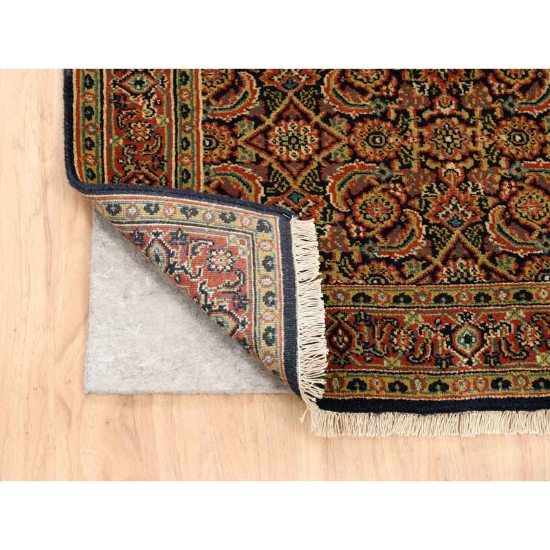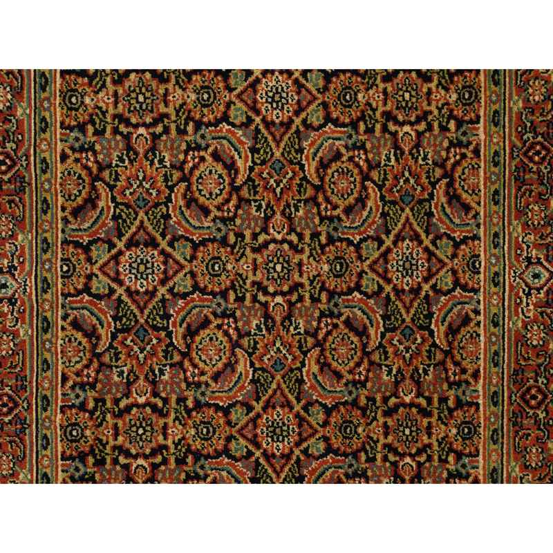 2’9″x12’4″ Jet Black Herati All Over Fish Design Dense Weave Hand Knotted 250 KPSI Wool Oriental Runner Rug Sh63023