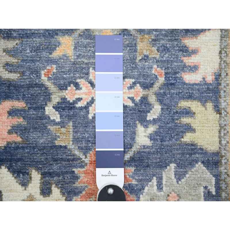 2’9″x15’8″ Admiral Blue, Afghan Angora Oushak with Colorful Motifs Natural Dyes, 100% Wool Hand Knotted, XL Runner Oriental Rug Sh73852