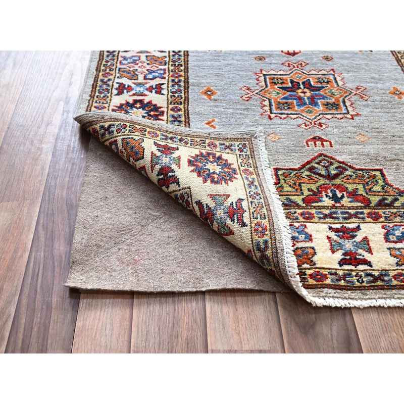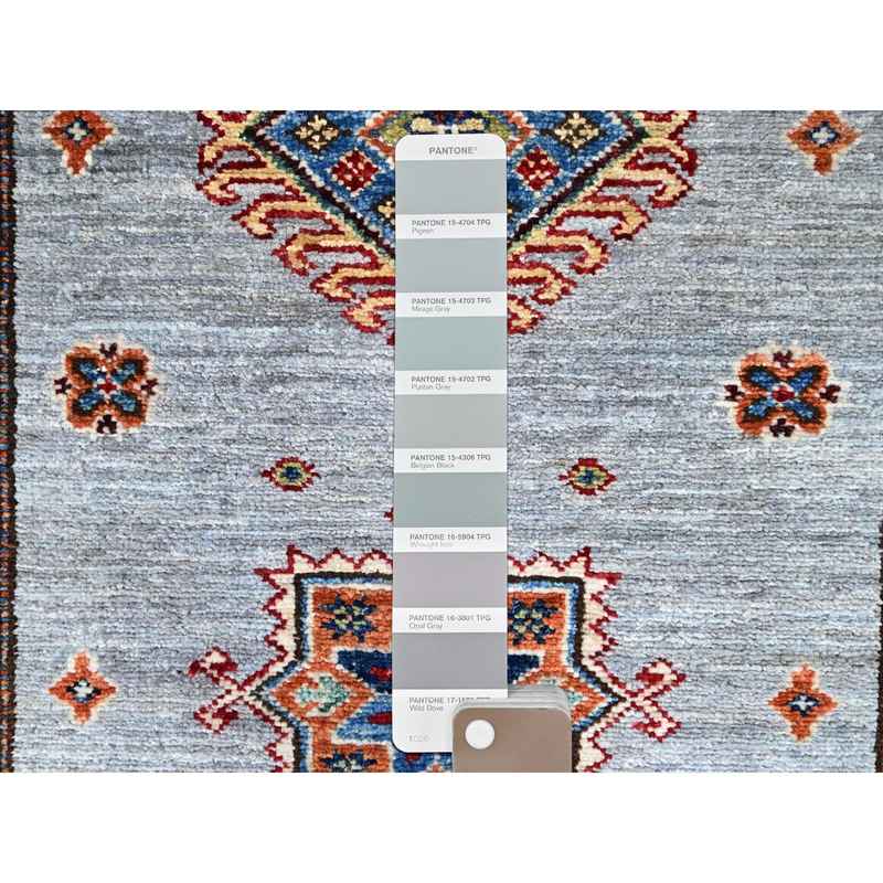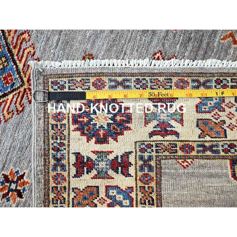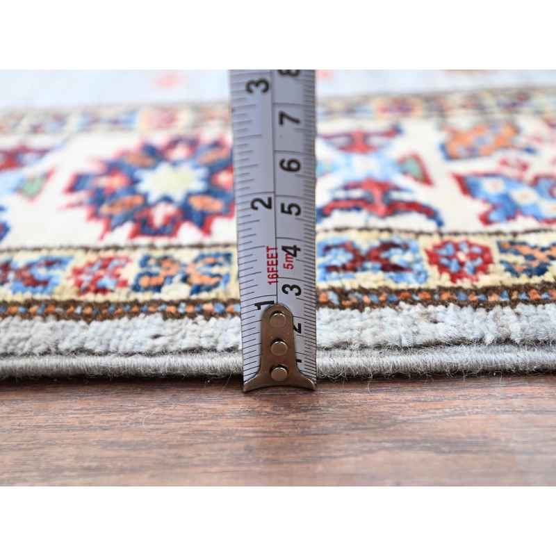 2’9″x18’2″ Jubilee Gray and Cosmic Latte White, Vegetable Dyes, Denser Weave Organic Wool, Hand Knotted Afghan Super Kazak with Tribal Geometric Medallions, XL Runner Oriental Rug Sh86916