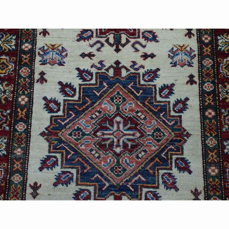 2’9″x19’1″ Ivory Super Kazak Geometric Design Hand-Knotted XL Runner Oriental Rug Sh50187