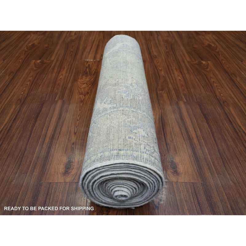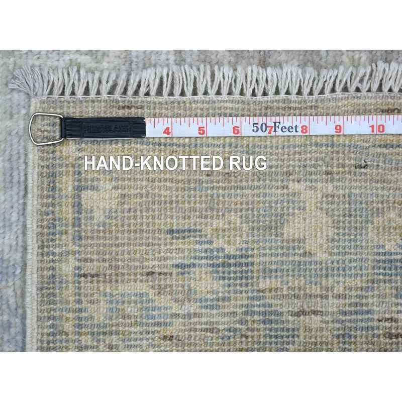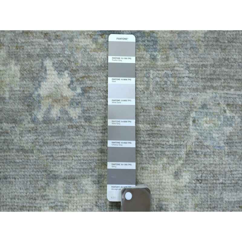 2’9″x19’5″ Gray Afghan Angora Oushak with All Over Leaf Design, Hand Knotted, Natural Wool XL Runner Oriental Rug Sh71331