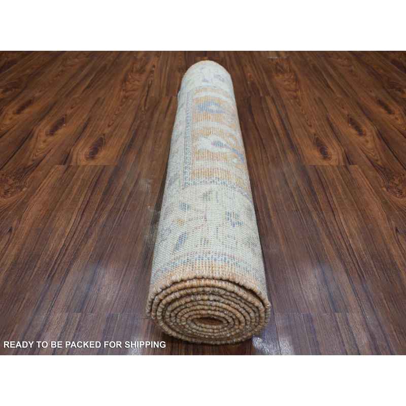 2’9″x9’10” Faded Orange Angora Oushak with Willow and Cypress Tree Design, Natural Dyes, Afghan Wool Hand Knotted Runner Oriental Rug Sh71559
