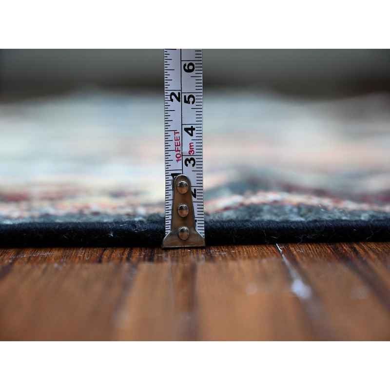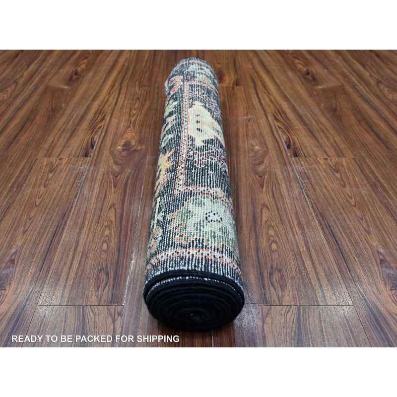 2’9″x9’10” Licorice Black, Soft and Vibrant Wool Hand Knotted Afghan Angora Oushak Motifs With Pop of Colors, Natural Dyes Oriental Runner Rug Sh88158