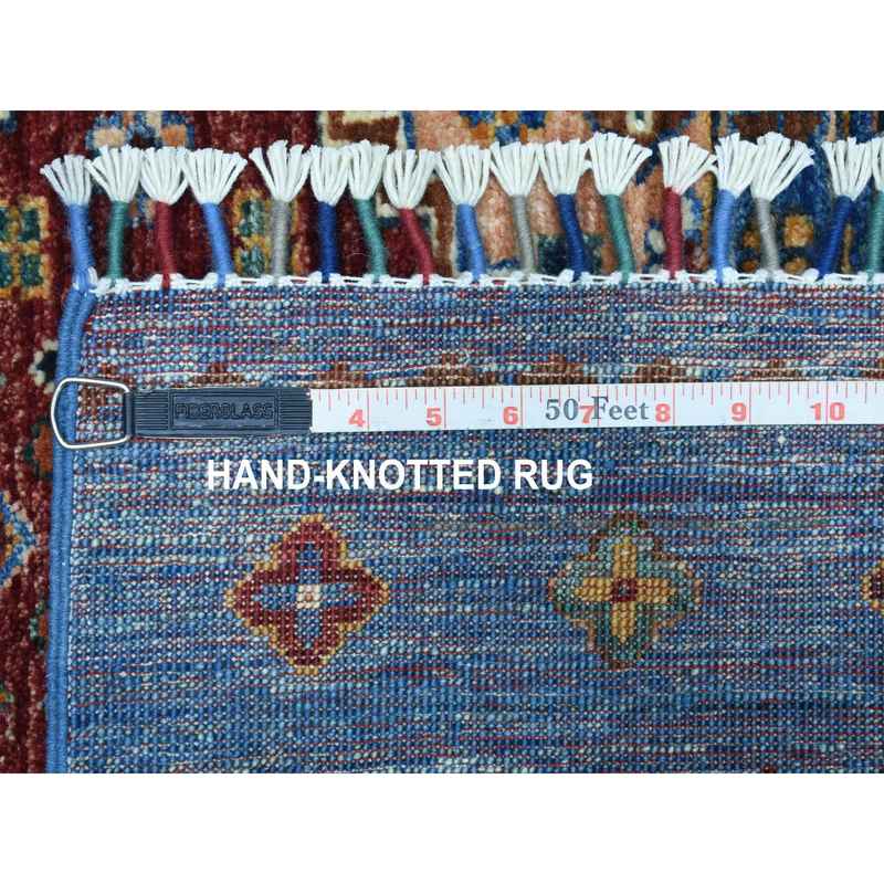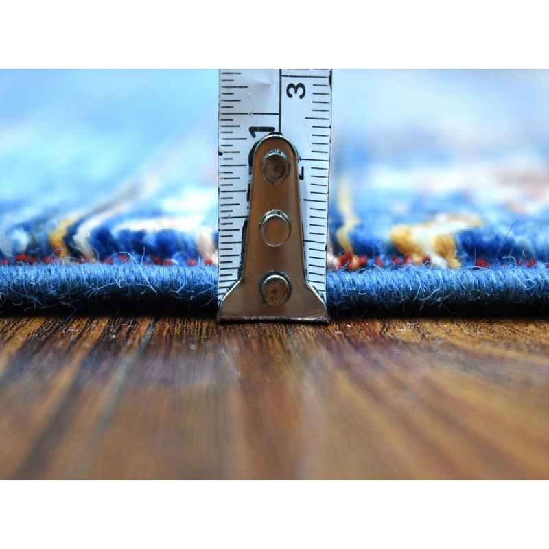 2’9″x9’2″ Denim Blue Super Kazak Khorjin Design With Colorful Tassels Hand Knotted Vibrant Wool Oriental Runner Rug Sh67116