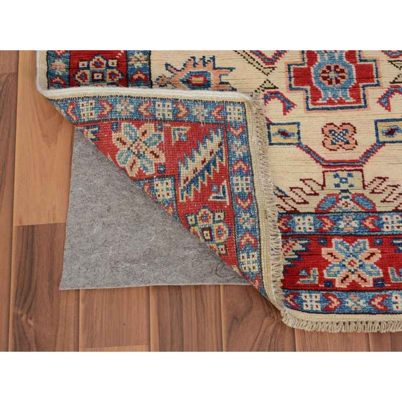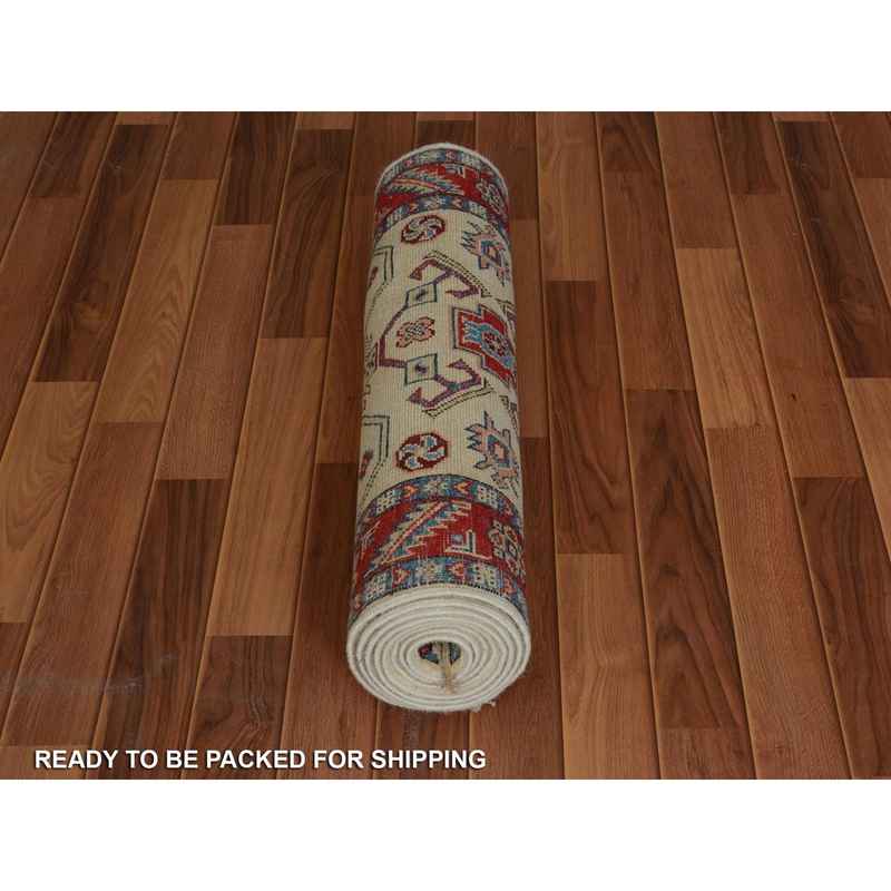 2’9″x9’3″ Ivory Special Kazak Geometric Design Pure Wool Hand Knotted Runner Oriental Rug Sh57088