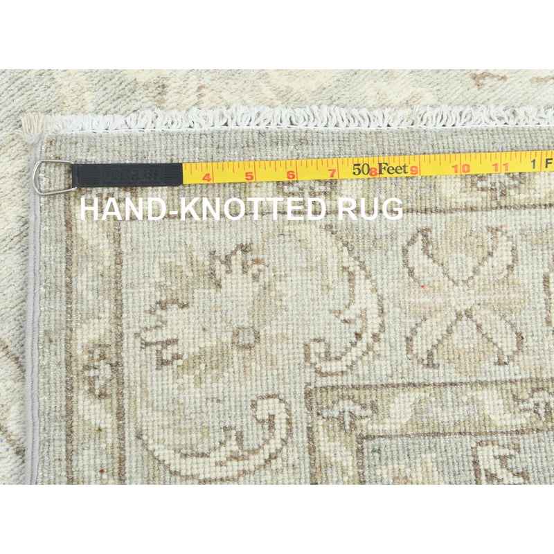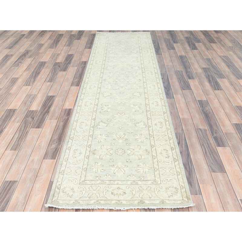 2’9″x9’7″ Ivory, Hand Knotted, Afghan Stone Washed Peshawar, Soft Wool, Runner Oriental Rug Sh85213