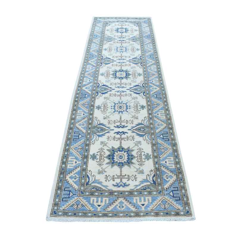 2’9″x9’7″ Ivory Vintage Look kazak Organic Wool Hand Knotted Oriental Rug Sh54660