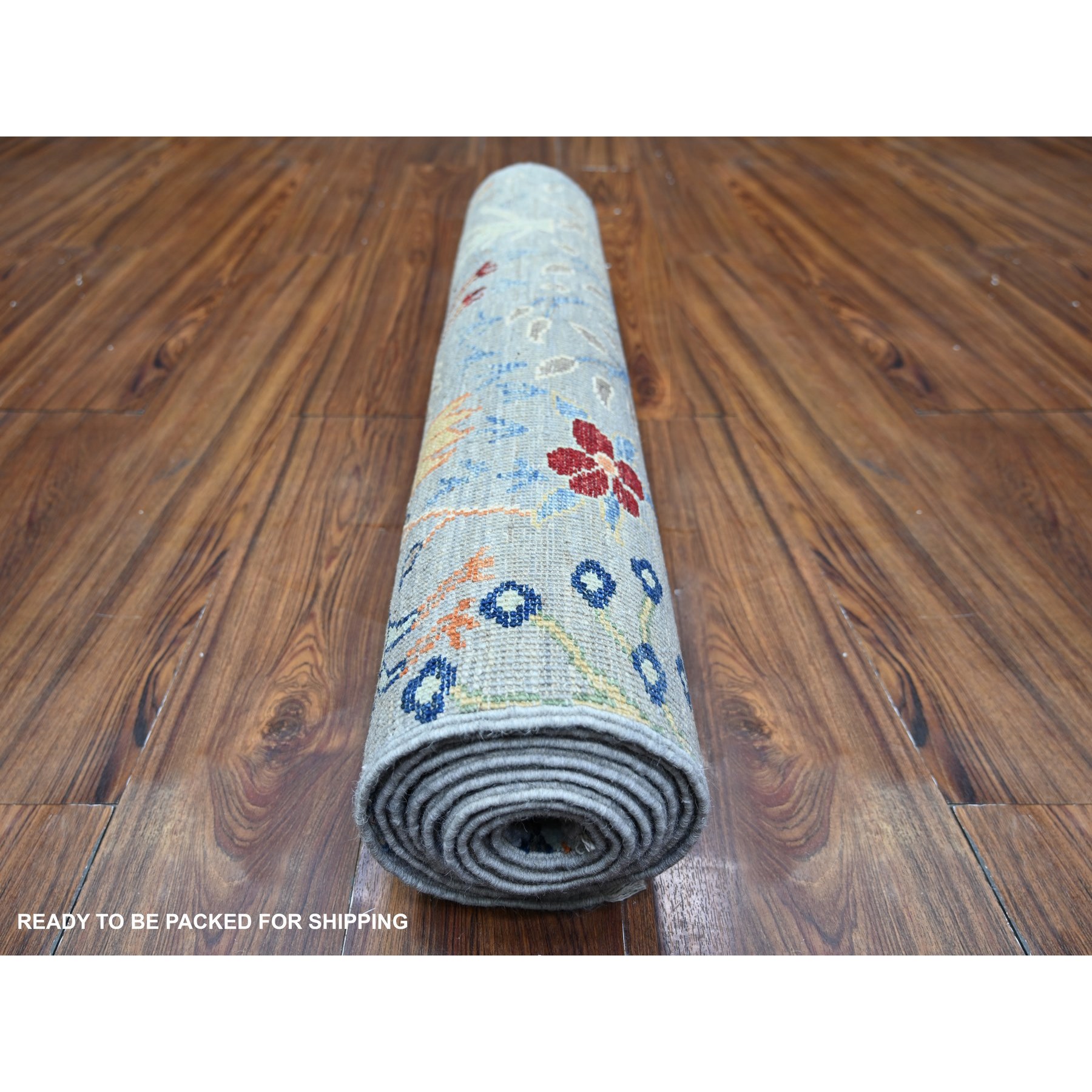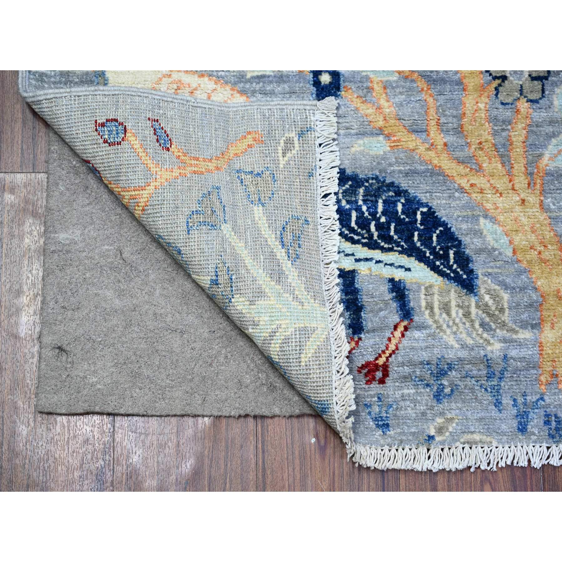 2’9″x9’8″ Blue Gray, Birds of Paradise Tree of Life Afghan Peshawar, Organic Wool, Hand Knotted, Runner Oriental Rug Sh74527