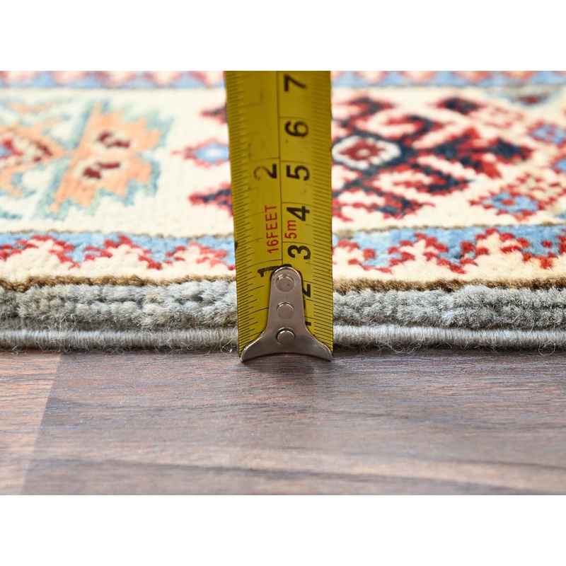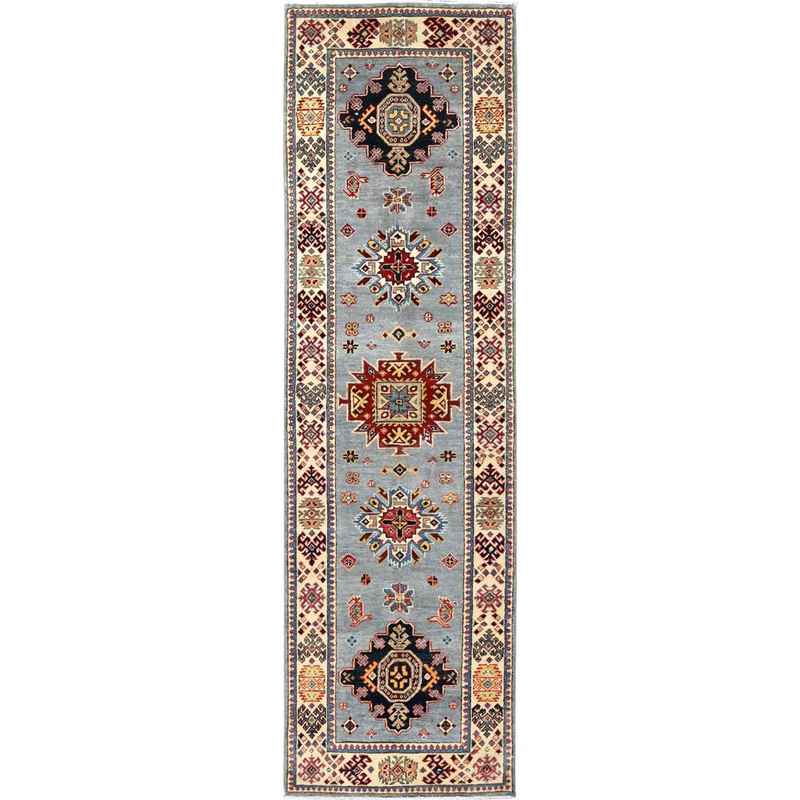 2’9″x9’8″ Harbor Mist Gray, Afghan Special Kazak with Geometric Elements, Vegetable Dyes, Pure Wool, Runner Hand Knotted Oriental Rug Sh86459