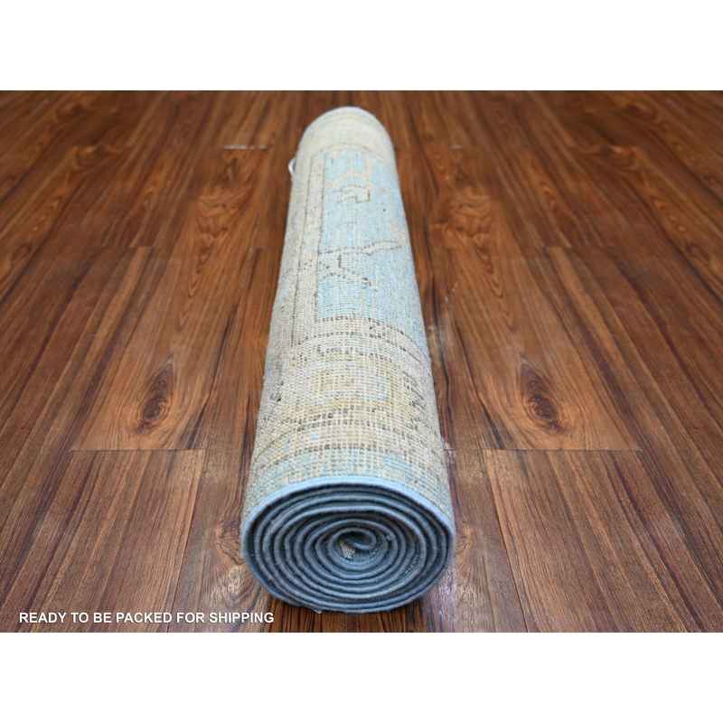 2’9″x9’9″ Berry Blue, Afghan Angora Oushak With Faded Colors, Natural Dyes, Soft Wool, Hand Knotted, Runner Oriental Rug Sh73878