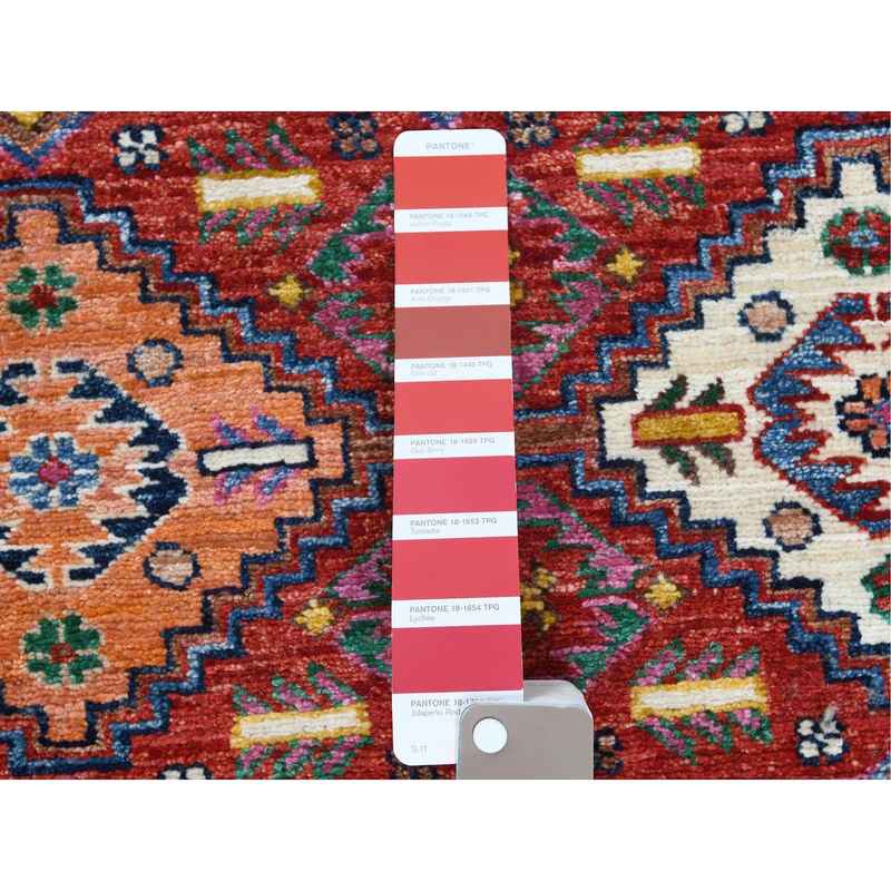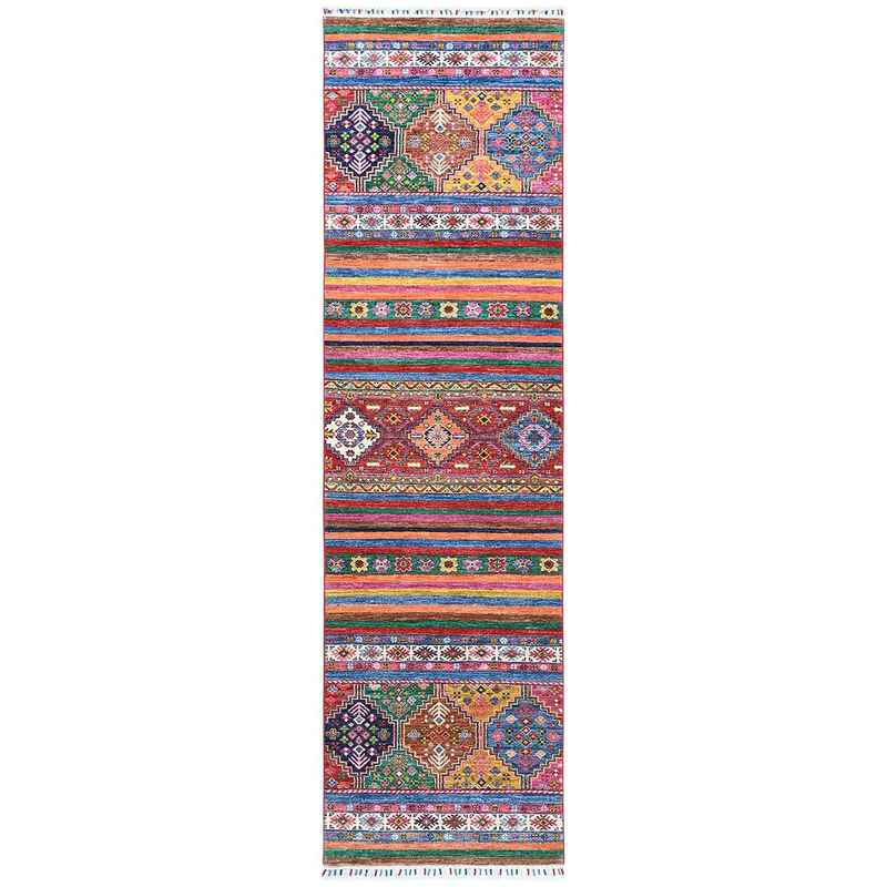 2’9″x9’9″ Red Super Kazak In A Colorful Palette Khorjin Design Pure Afghan Wool Hand Knotted Oriental Runner Rug Sh60844