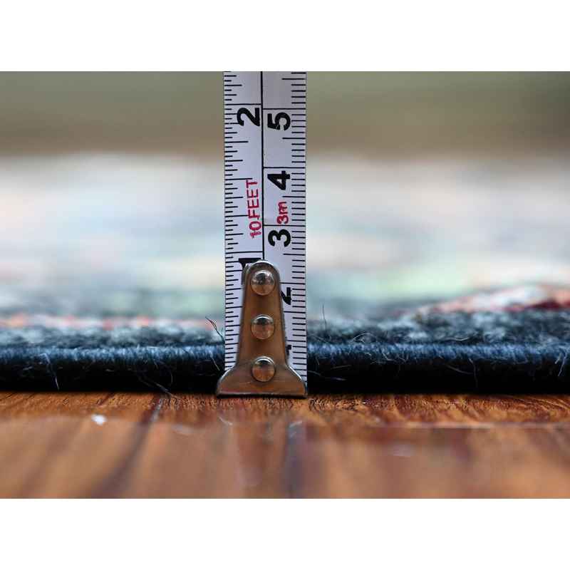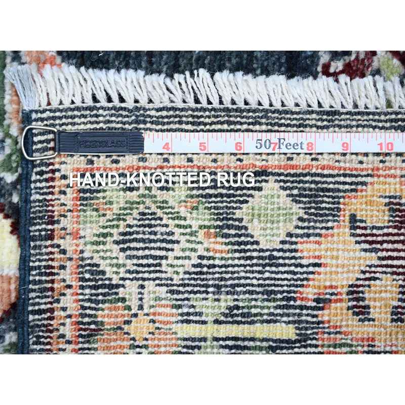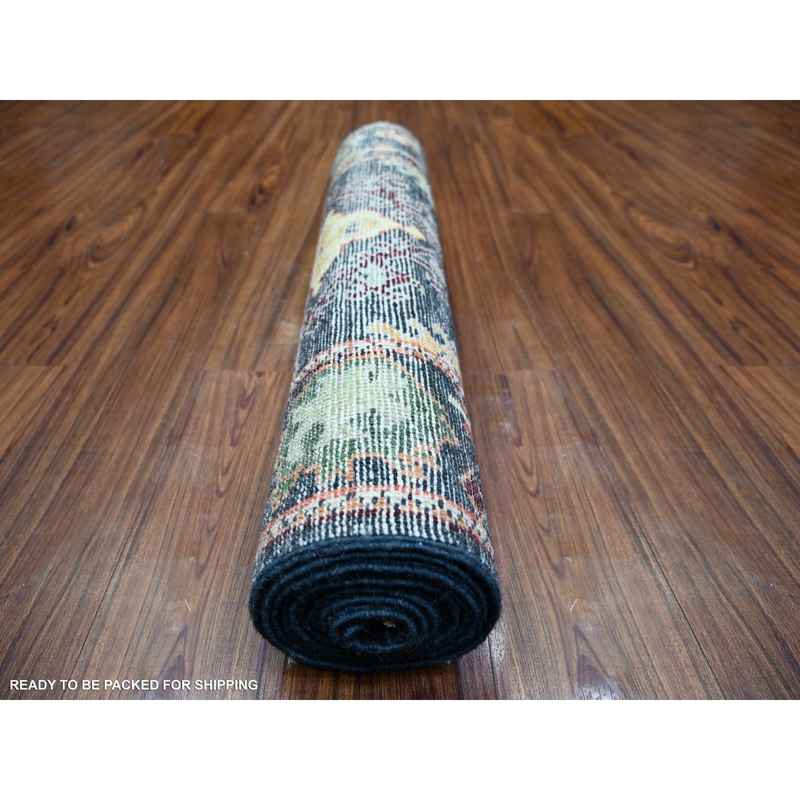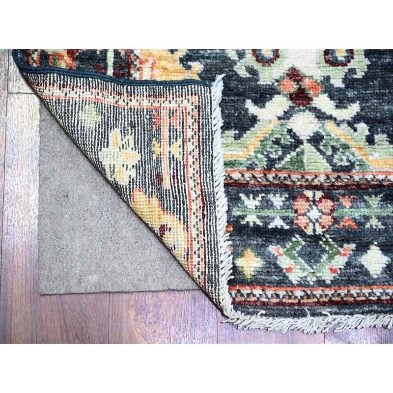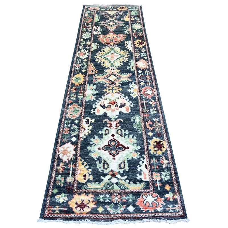 2’9″x9’9″ True Black, 100% Wool Hand Knotted, Afghan Angora Oushak with Pop of Colors Natural Dyes, Runner Oriental Rug Sh73656