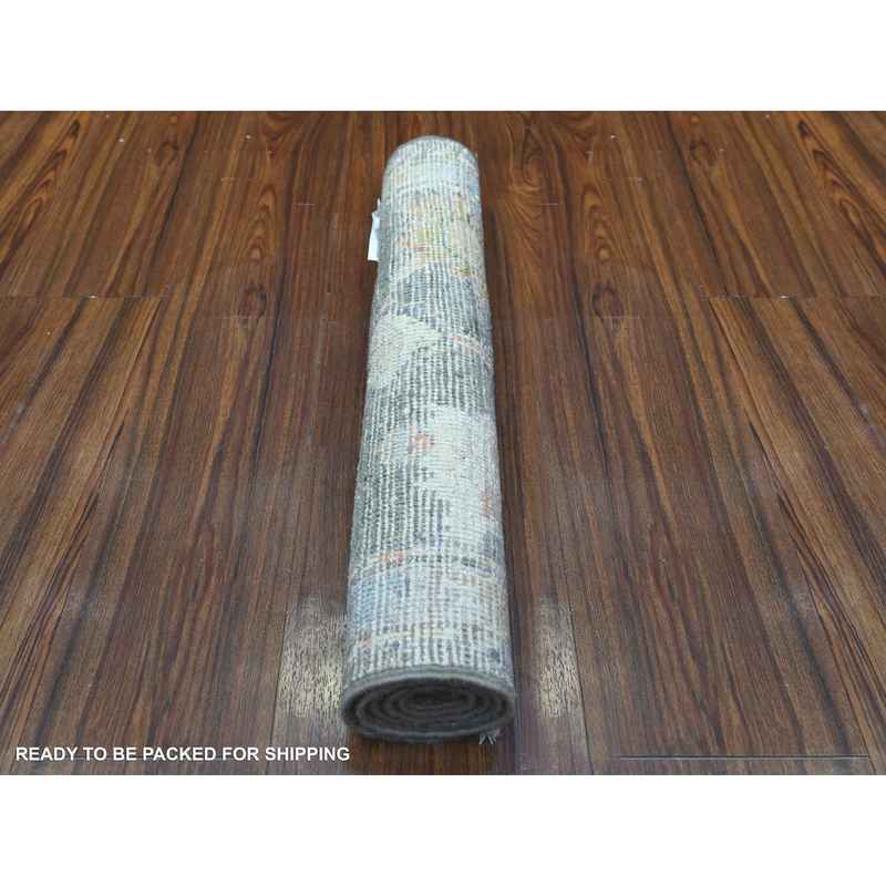 2’x3’2″ Chelsea and Metropolitan Gray, Hand Knotted, Natural Dyes and Soft Wool, Afghan Angora Oushak with All Over Design, Mat Oriental Rug Sh88160