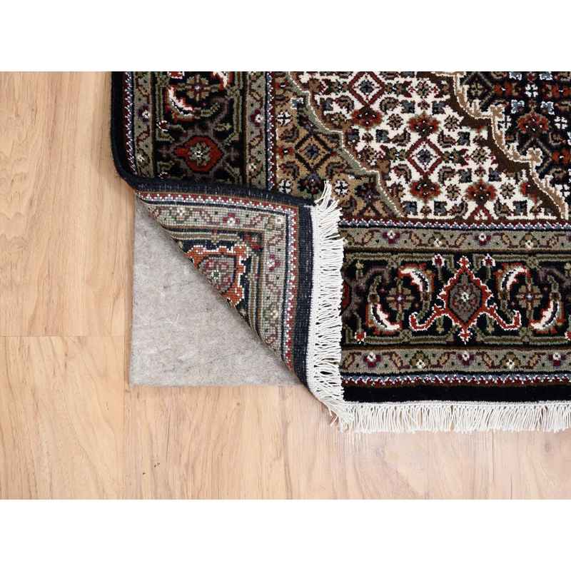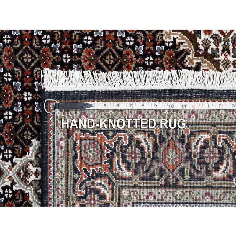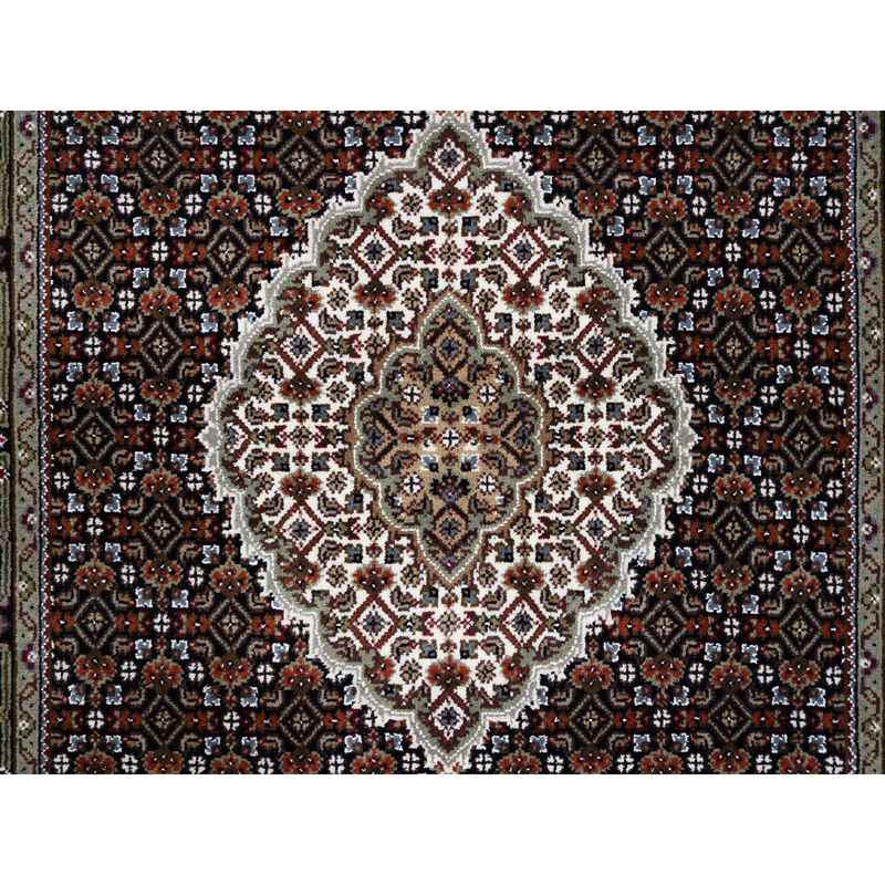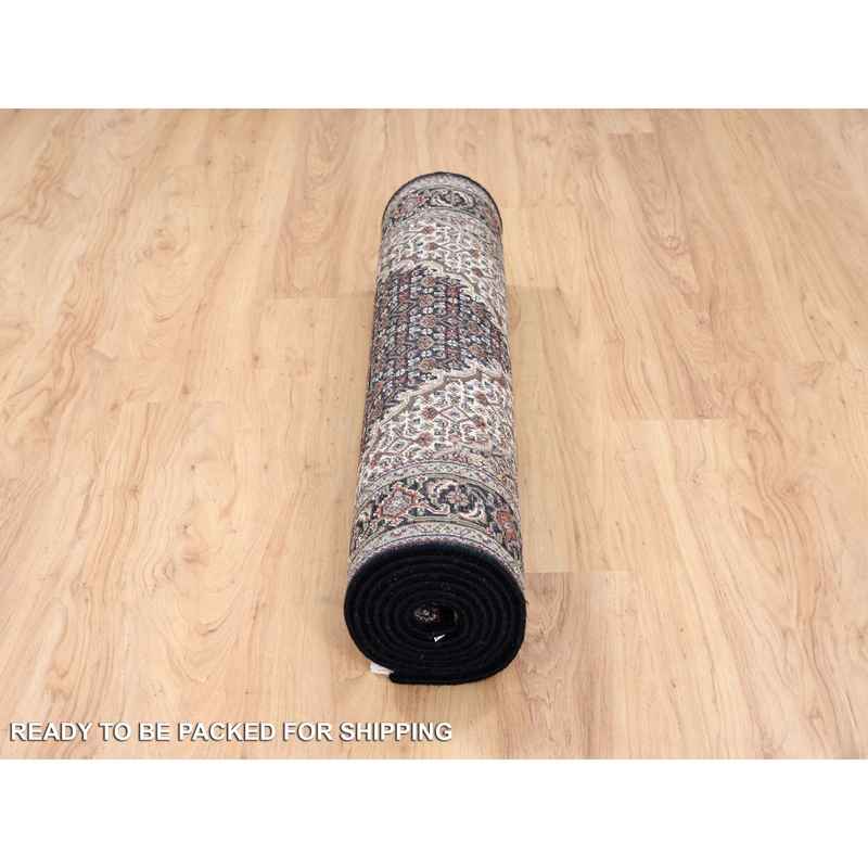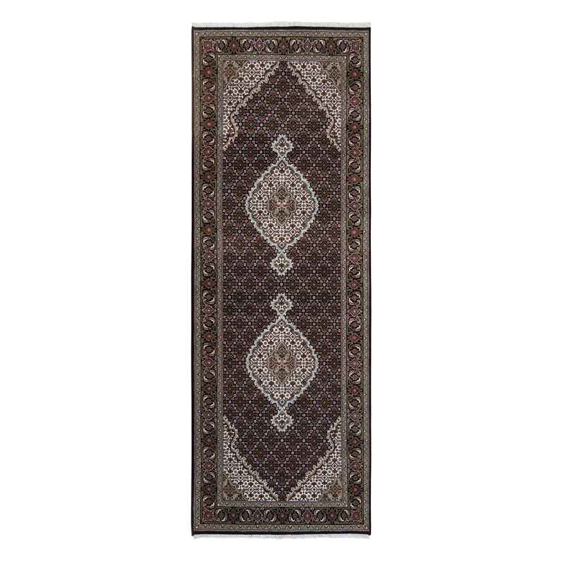 3’10″x10’4″ Wool Black Tabriz Mahi with Fish Medallions Design Hand Knotted Wide Runner Oriental Rug Sh63320