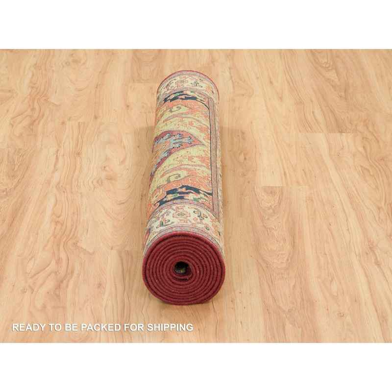 3’10″x12’1″ Terracotta Red, Pure Wool Hand Knotted, Antiqued Fine Heriz Re-Creation, Natural Dyes Densely Woven, Wide Runner Oriental Rug Sh65499