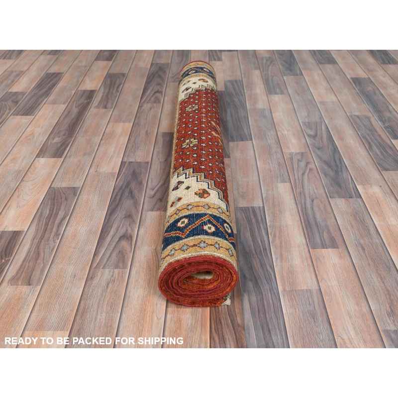 3’10″x6′ Cinnamon Red, Hand Knotted, Special Kazak with Medallion Design, Organic Wool, Natural Dyes Oriental Rug Sh81766