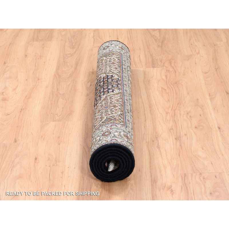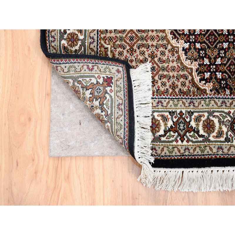 3’10″x6′ Hand Knotted Black Tabriz Mahi Fish Medallion Design Wool Oriental Rug Sh62488
