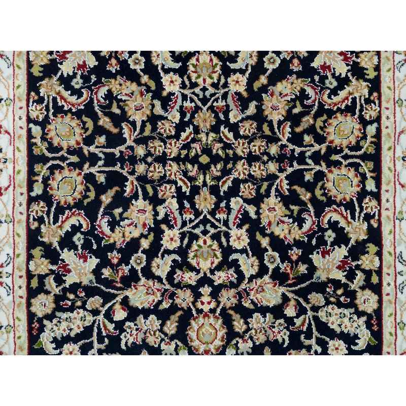 3’10″x9’7″ Midnight Blue, Nain with All Over Flower Design, 250 KPSI, 100% Wool, Hand Knotted, Wide Runner Oriental Rug Sh65971