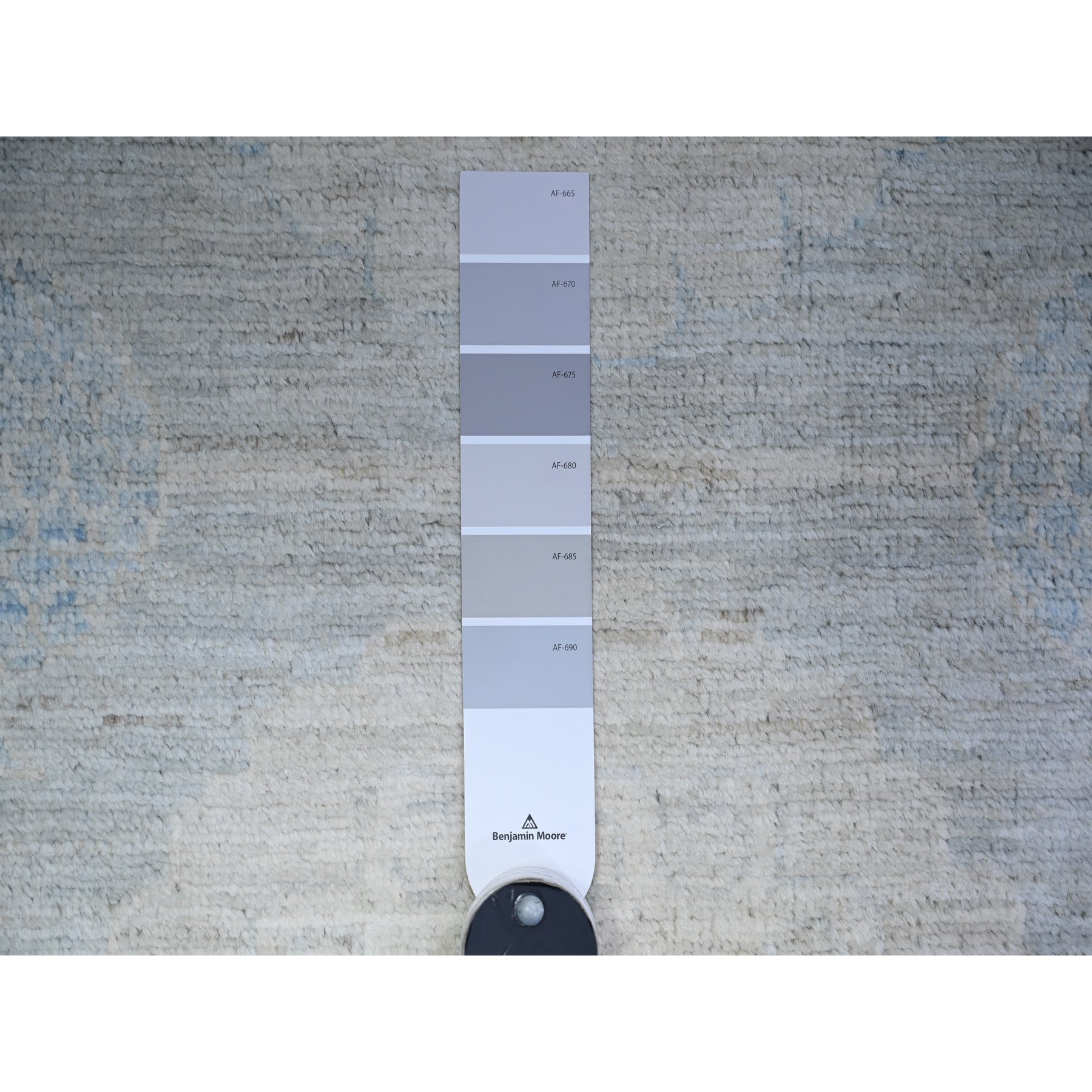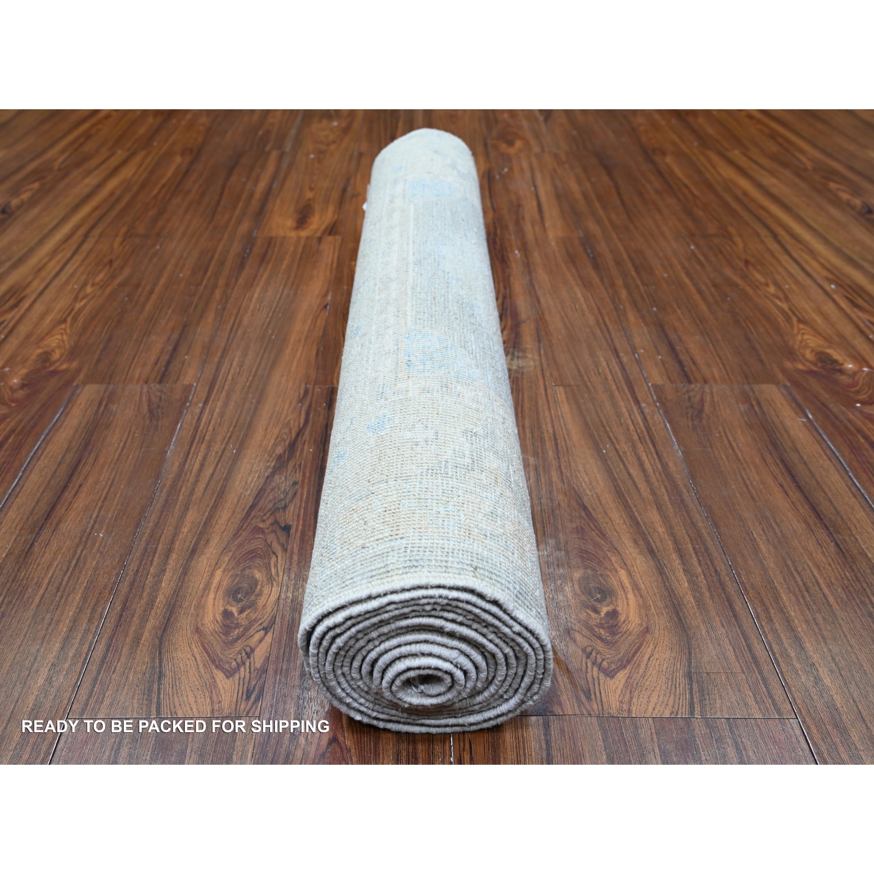 3’1″x12′ Blue Gray and White Dove, Vegetable Dyes, White Wash Peshawar with Faded Out , Shiny Wool, Hand Knotted, Runner Oriental Rug Sh74961