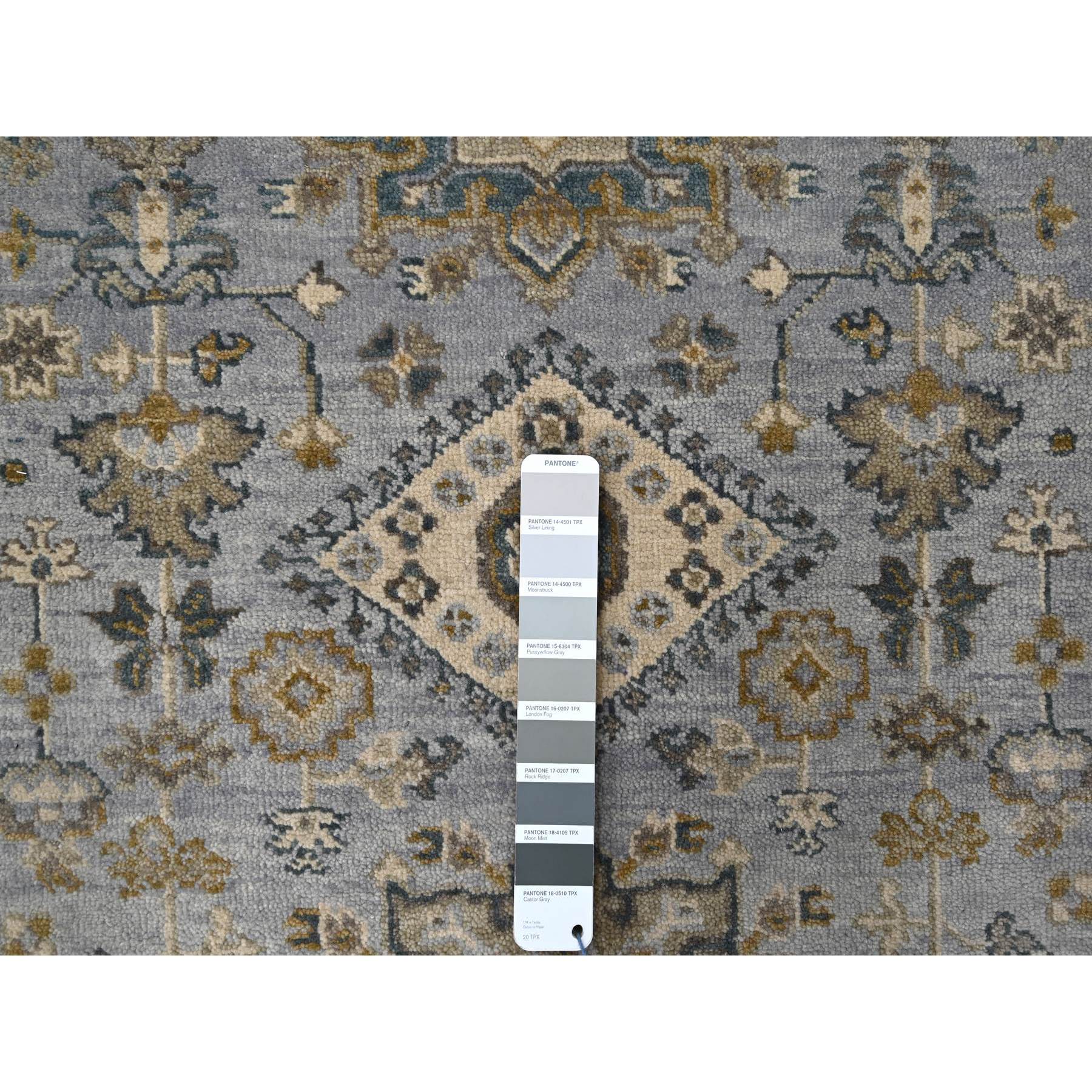 3’1″x4’10” Window Gray, Karajeh Pure Wool Design with Geometric Medallion, Hand Knotted, Oriental Rug Sh84745