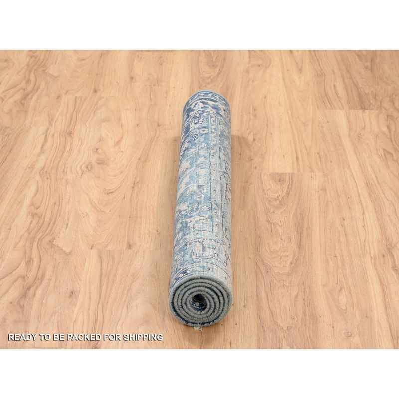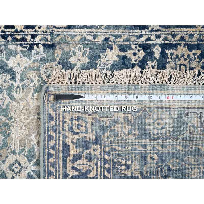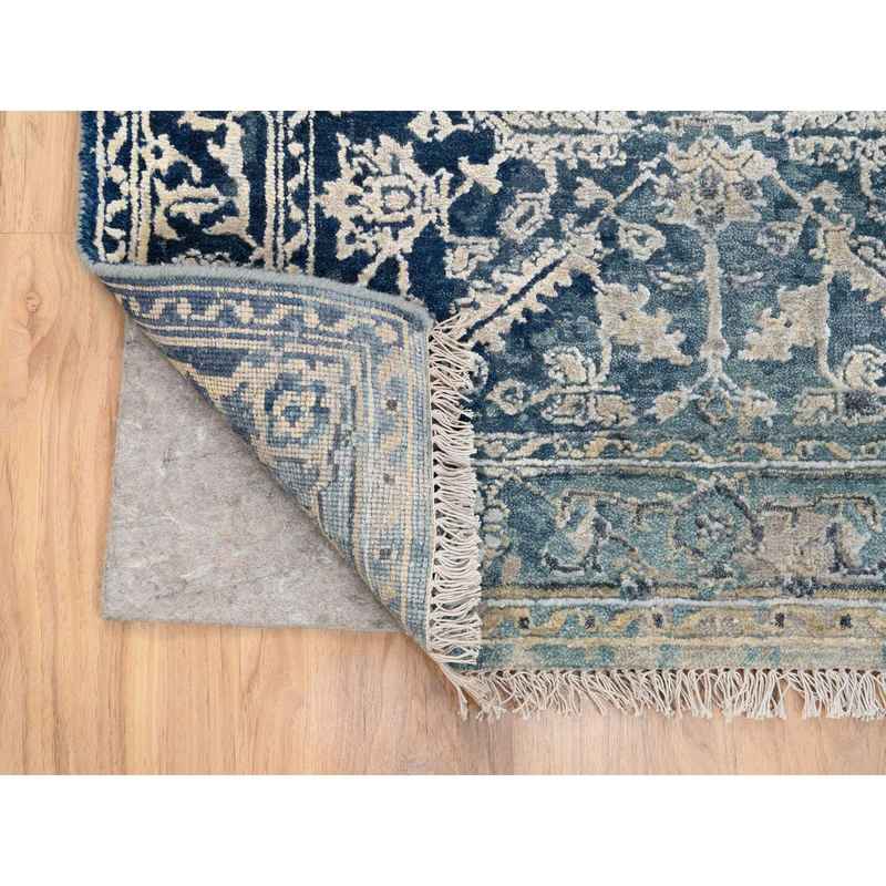 3’1″x5′ Navy Blue, Broken Persian Heriz Erased Design, Wool and Silk, Hand Knotted, Oriental Rug Sh63880