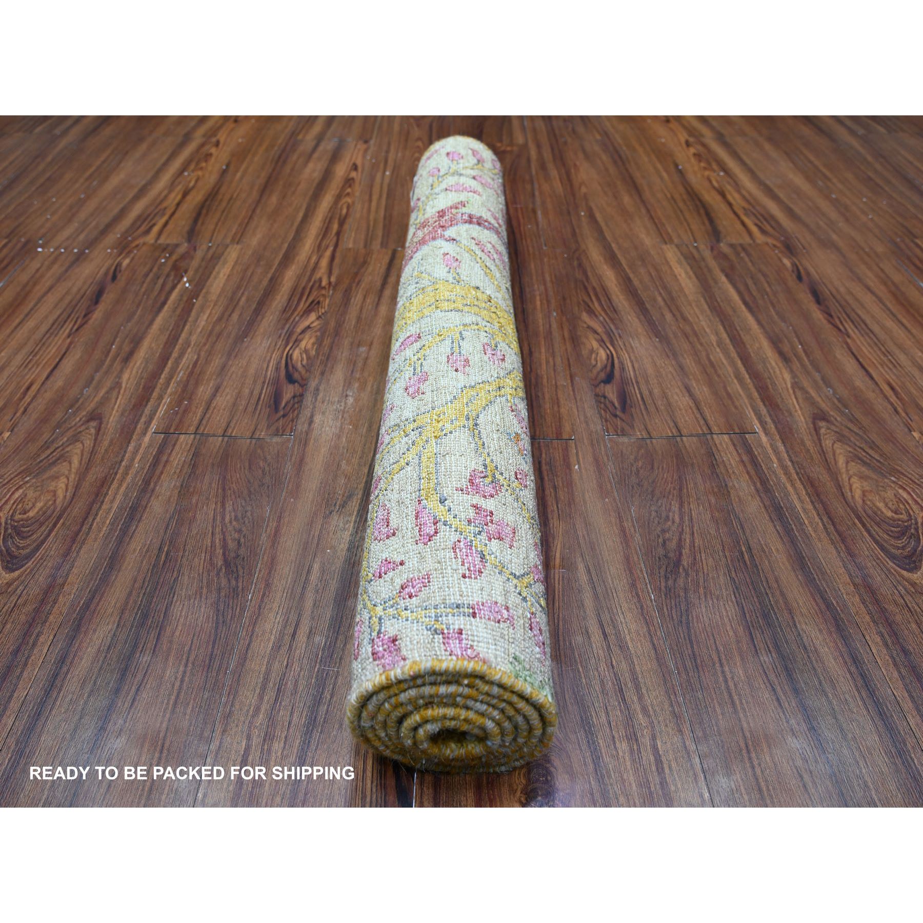 3’1″x5’1″ Echo Gray, Vegetable Dyes, Afghan Peshawar with Birds of Paradise, 100%l Wool Hand Knotted, Runner Oriental Rug Sh74912
