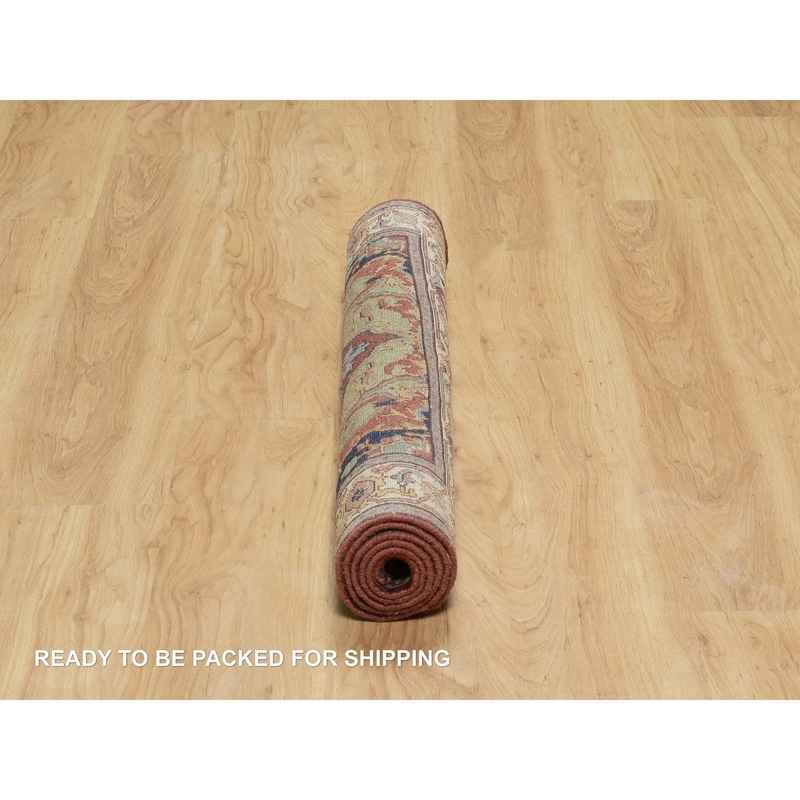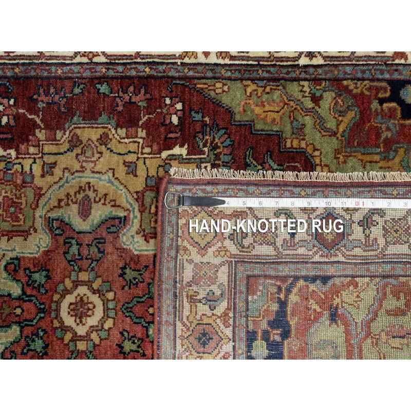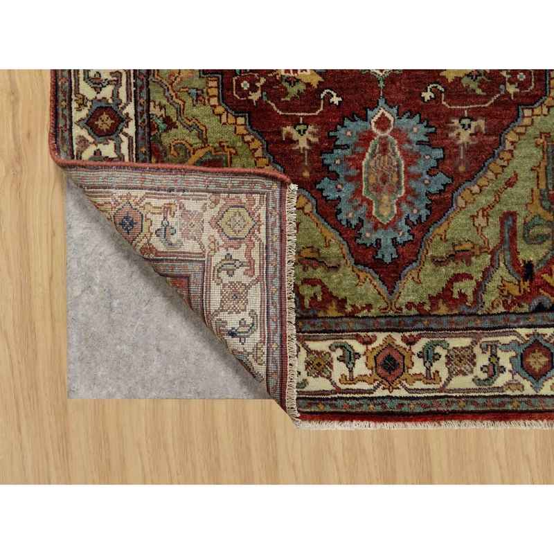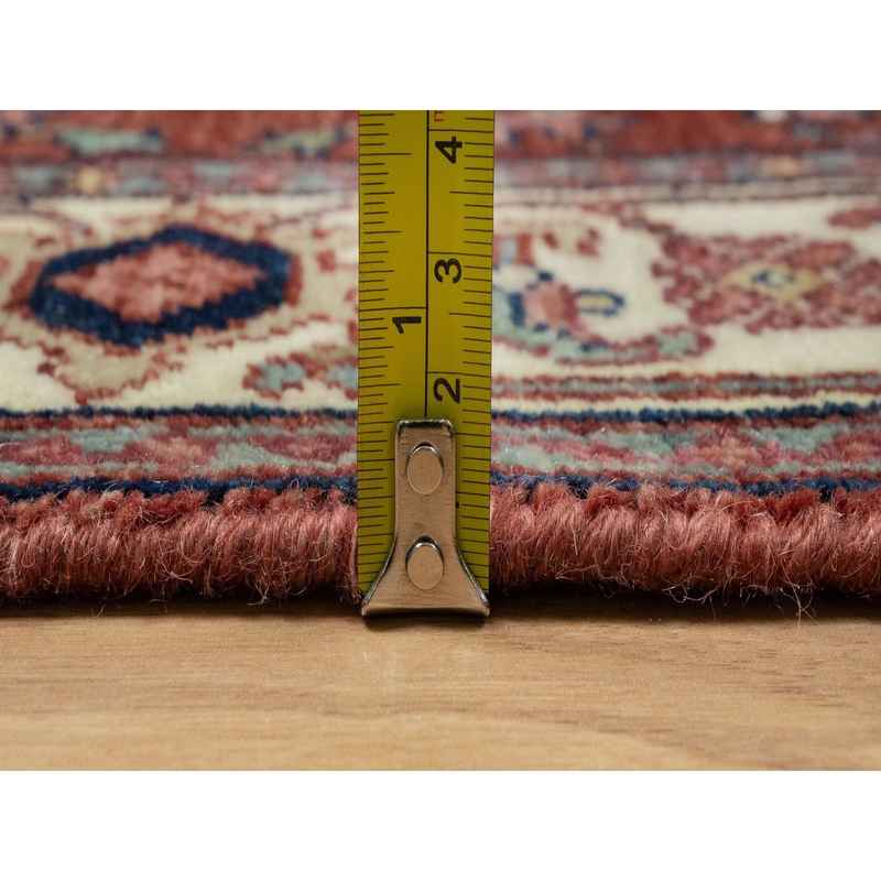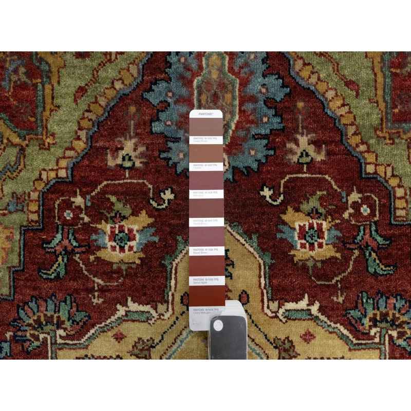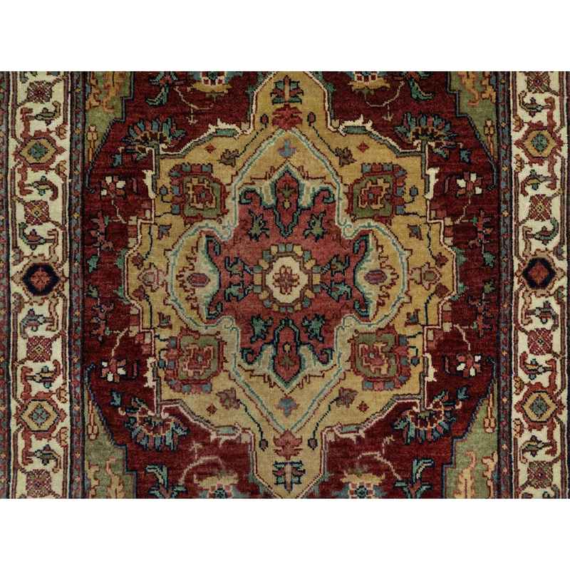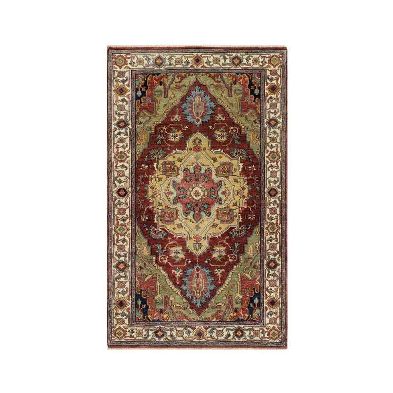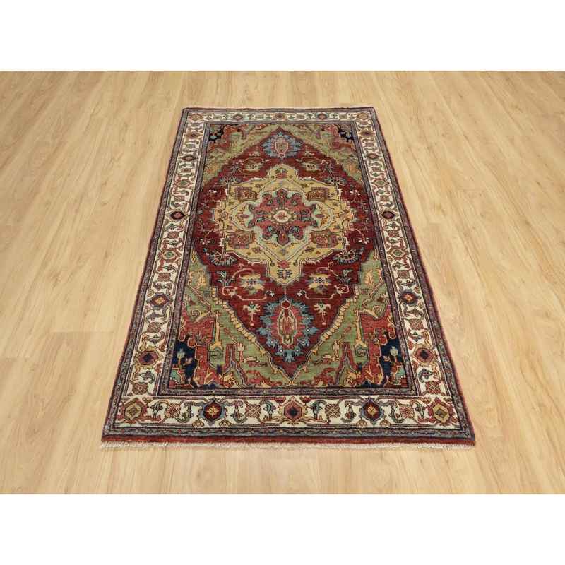 3’2″x5’3″ Spiced Apple Red With Ivory Border, Plush and Lush Pile, Central Medallion Design, Antiqued Fine Heriz Re-Creation, Hand Knotted Denser Weave, Vegetable Dyes, All Wool, Oriental Rug Sh90931