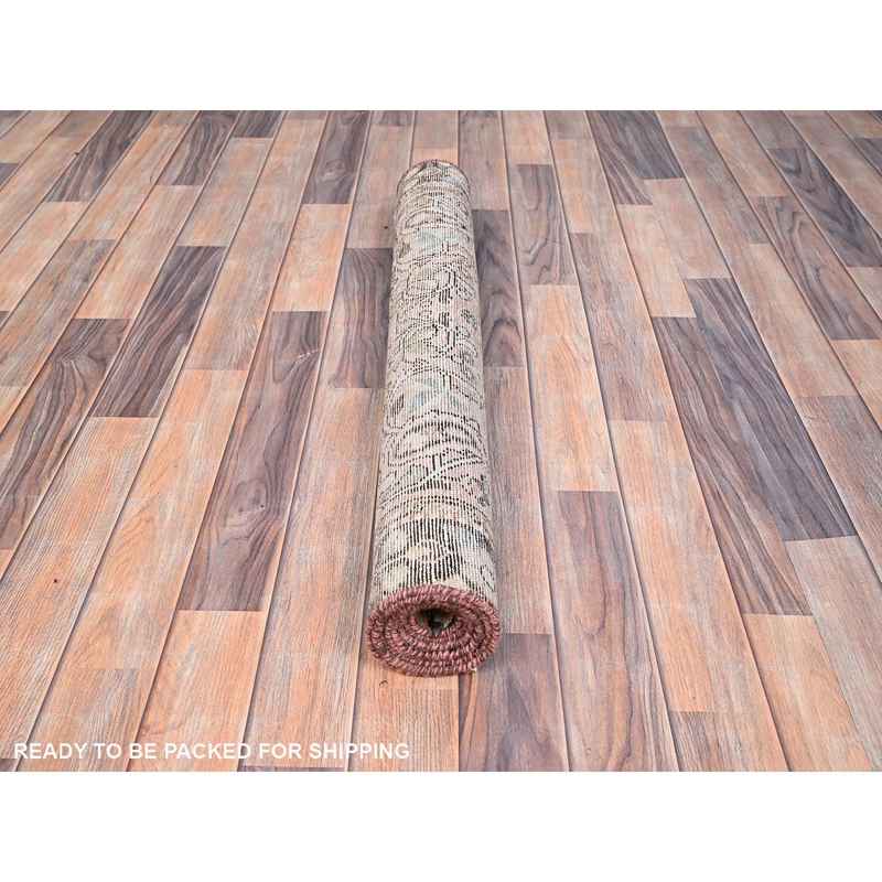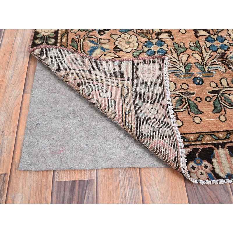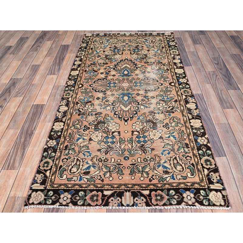 3’2″x6’7″ Tumbleweed Brown, Semi Antique Persian Lilahan, Cropped Thin, Distressed Look, Evenly Worn Hand Knotted, Pure Wool, Professionally Secured and Cleaned, Wide Runner Oriental Rug Sh86000