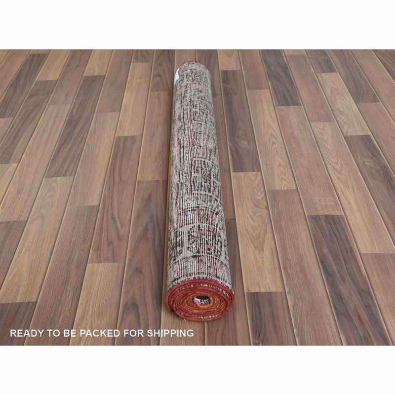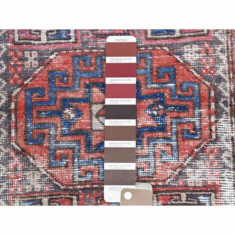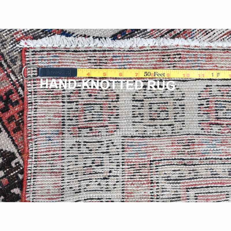 3’2″x9’5″ Vintage Red Northwest Persian Distressed Pure Wool Hand Knotted Clean Oriental Runner Rug Sh60946