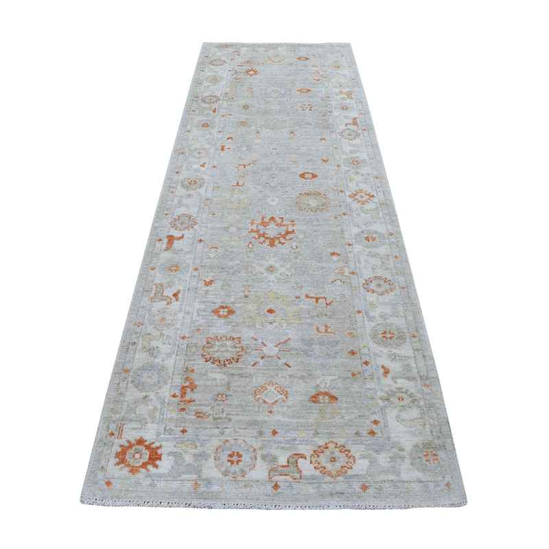 3’2″x9’7″ Cream Color Soft and Supple Wool Hand Knotted Angora Oushak Oriental Runner Rug Sh56411